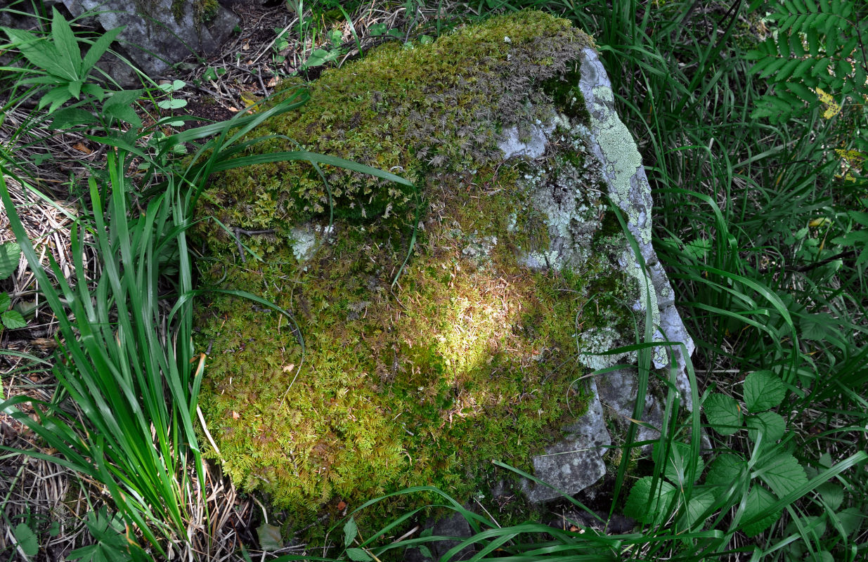Вегетирующие растения на камне. Челябинская обл., Саткинский р-н, хребет Москаль, ≈ 800 м н.у.м., опушка смешанного леса. 21.07.2020.