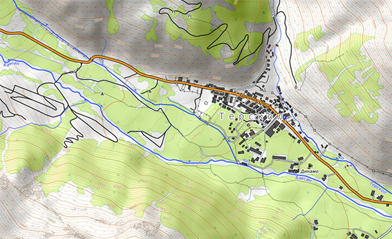 3. Карты начали переделывать уже после 1990-х (не знаю, зачем). На выложенном вами куске карты обозначены противолавинная сооружения, построенные в 2015 году. Кстати, а кто автор вашей топографической карты, случайно не знаете? Автор должен быть указан. Интересно было бы узнать.