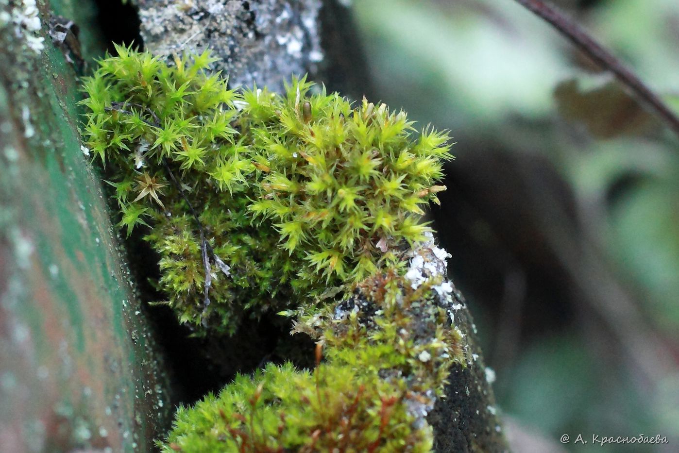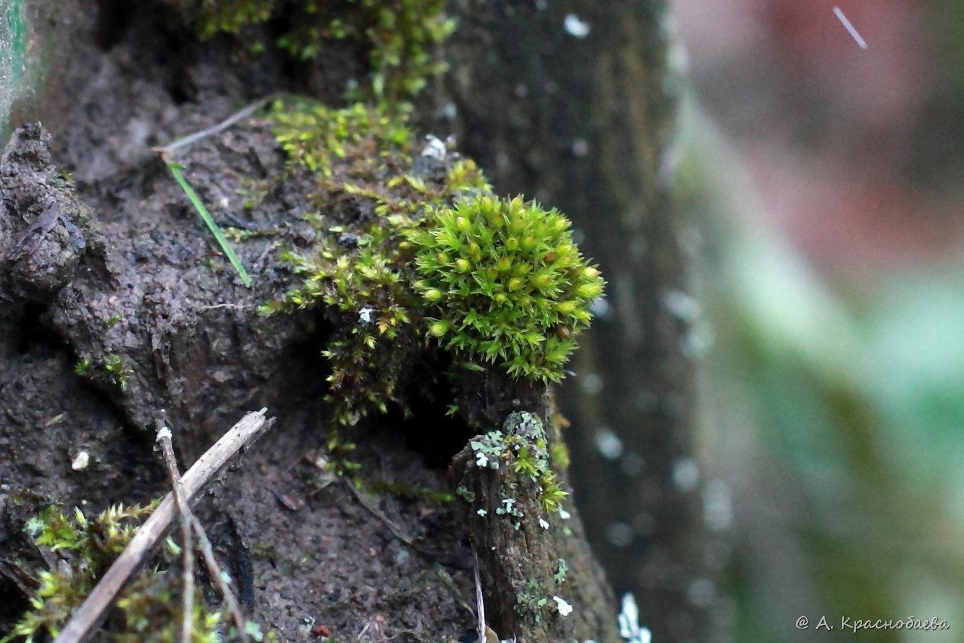 Спороносящие и вегетирующие растения на старой деревянной обшивке контейнера для цветов. Тульская обл., пос. Дубна, дачный участок. 30.11.2021.