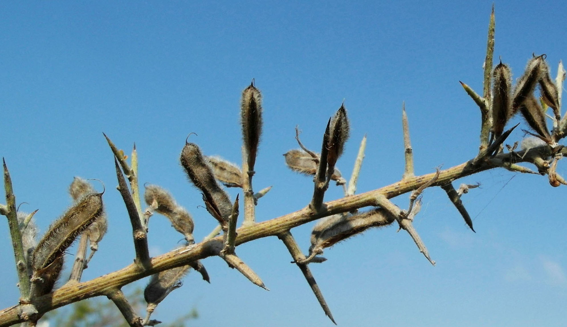 Но, ничего похожего на это очень распространенное растение 1-2м высотой с характерными стручками найти не удалосьКакой-то вид рода Cytisus или Genista, например, Cytisus lanigerus или Genista scorpius |