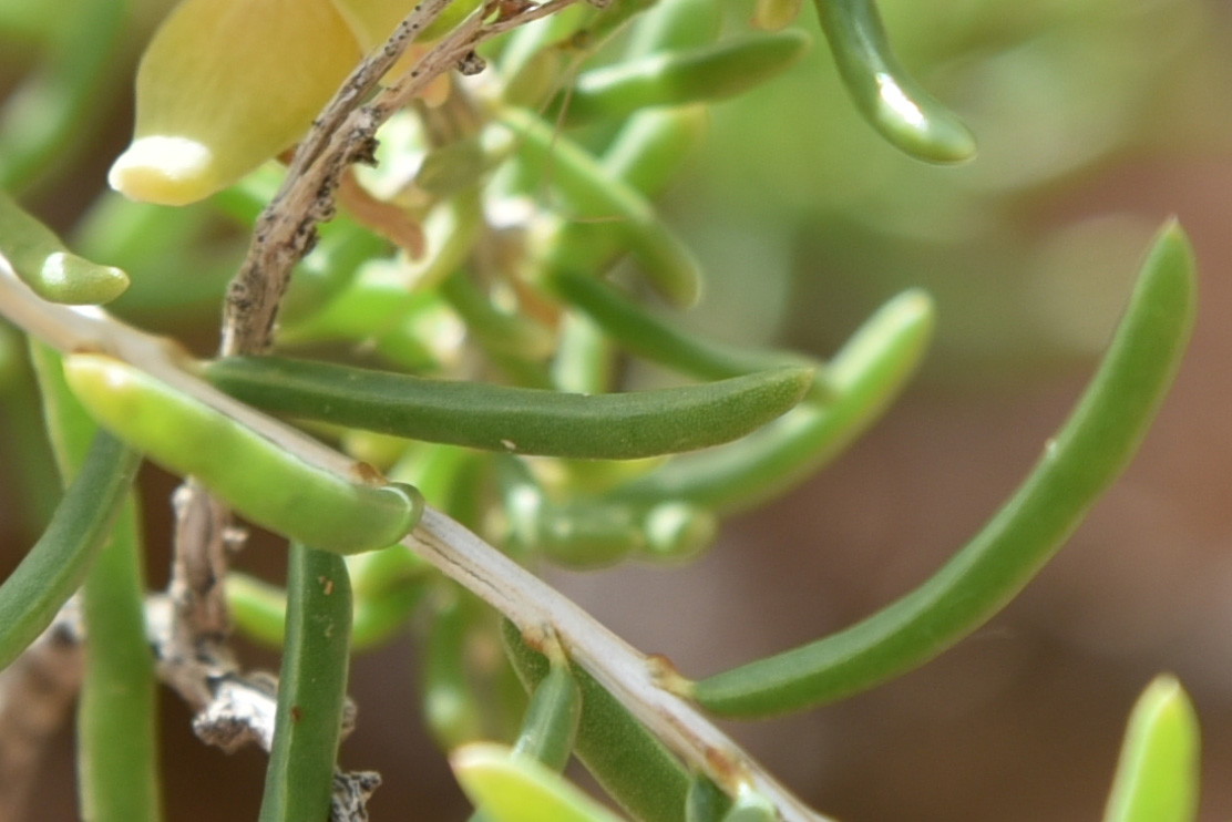 | Vladimir Pankratov | Спасибо всем за помощь в установлении истины! Я думаю, Владимир, вы правы - это скорее всего обычная S. arbusculiformis. Почему я в один момент склонился в сторону симпегмы - по описанию у Голоскокова и Кубанской (Формация симпегмы в Казахстане), её листья описываются как "листья...сочные вальковатые, сверху плосковатые, снизу полуцилиндрические, желтовато-зеленые, покрытые короткими сосочками...на концах листья имеют короткие шипики". В прилагаемом кропе снимка, я полагал, все эти признаки видны (либо я неправильно их интерпретировал). В том же источнике имеется рисунок, где изображен поперечный срез листа и который, с некоторой натяжкой, можно отнести к некоторым листьям с нашего растения. |