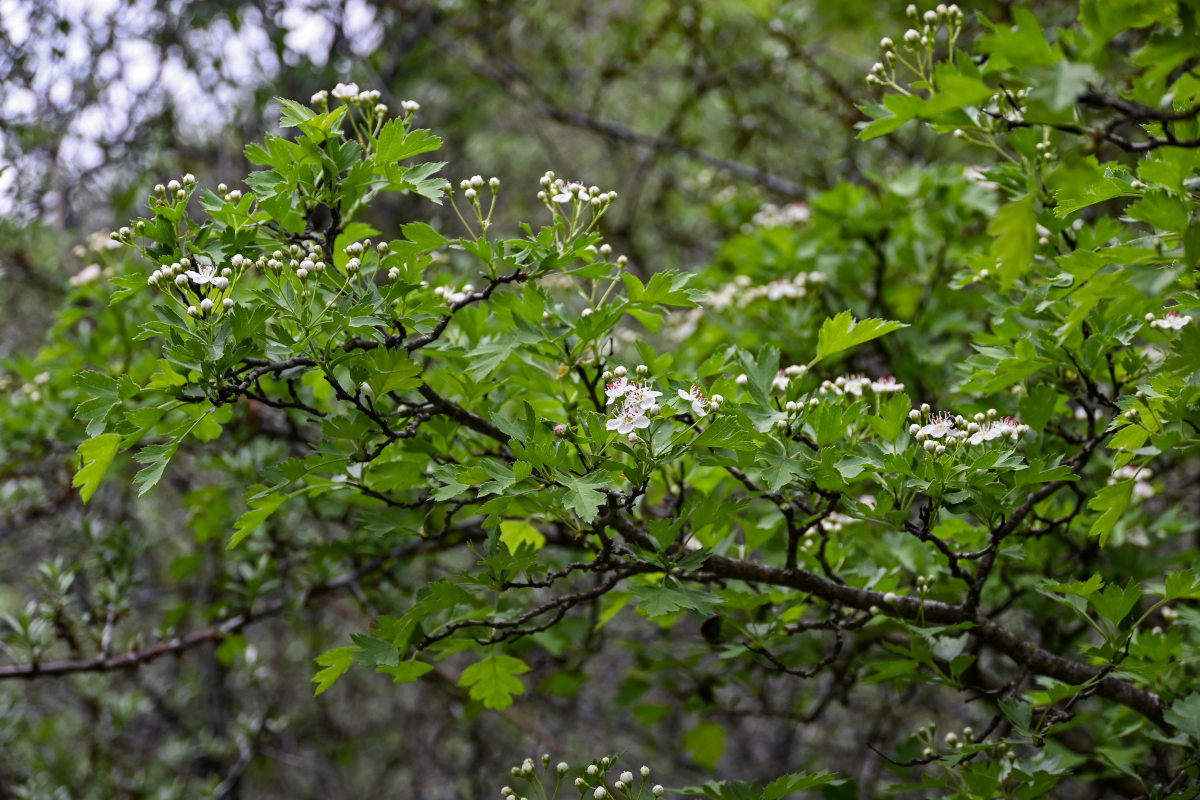 Верхушка ветви с распускающимися соцветиями. Дагестан, Гунибский р-н, Карадахская теснина, берег реки. 02.05.2022.