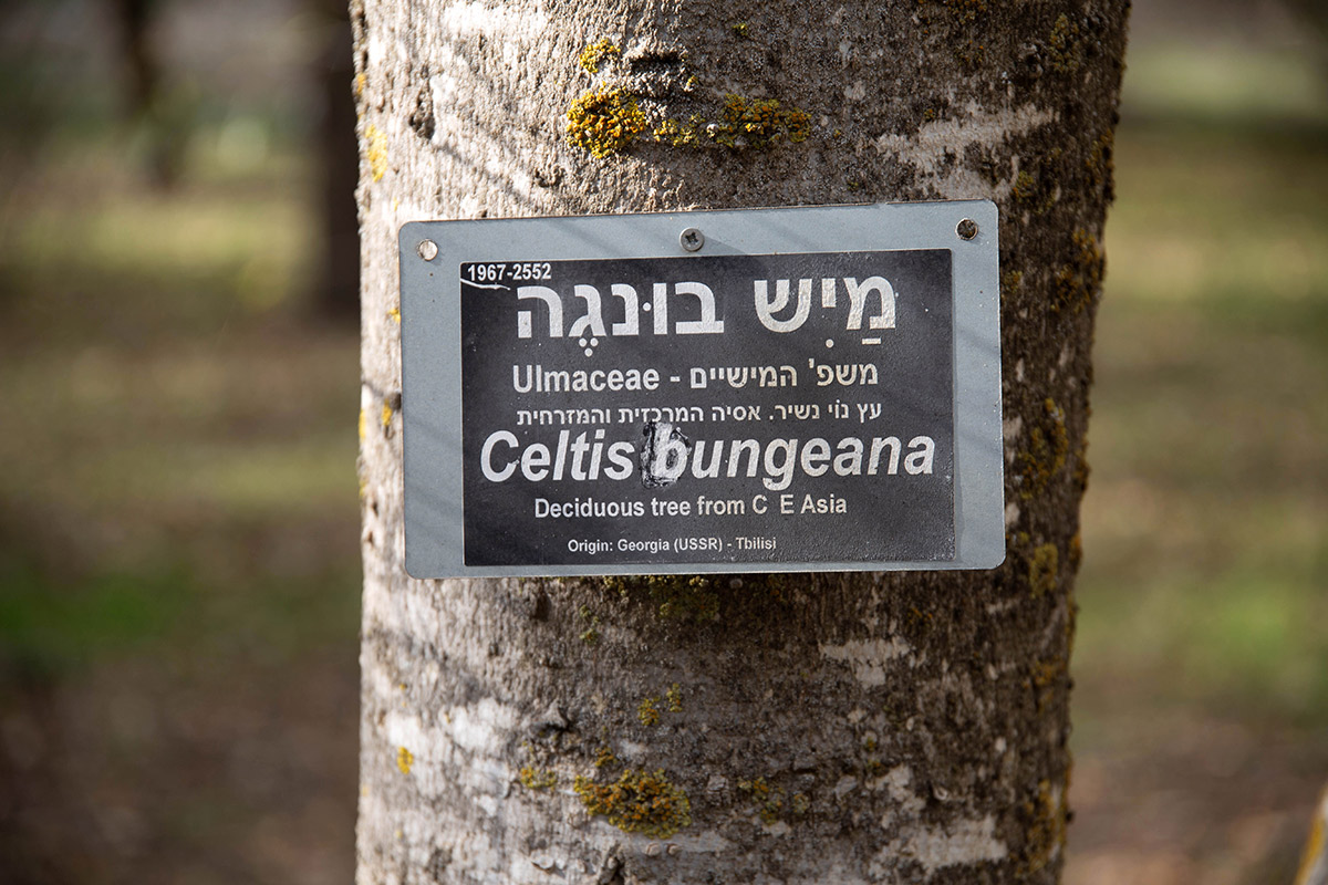 Взрослые деревья, почти сбросившие листву. Израиль, г. Иерусалим, ботанический сад университета. 30.11.2022.