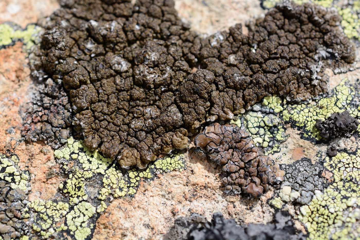 Талломы с апотециями. Краснодарский край, Адлерский р-н, хр. Аибга, гора Каменный Столб, 2480 м н.у.м., на скале. 29.07.2023.