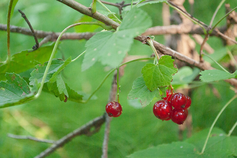 То ли Ribes triste, но жилки не красные. На некоторых снимках форма листьев похожа, на некоторых — нет.