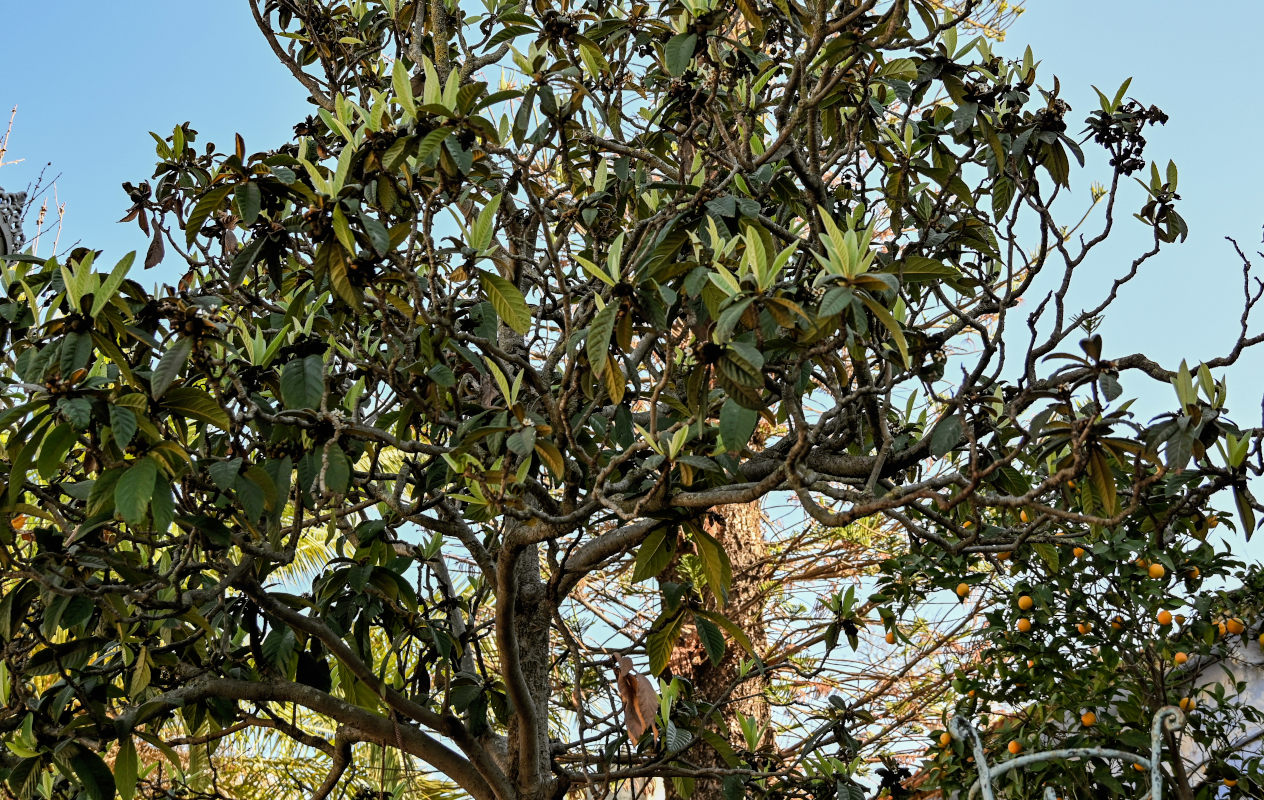 Часть кроны взрослого дерева. Марокко, обл. Танжер — Тетуан — Эль-Хосейма, хр. Эр-Риф, г. Шефшауэн, ≈ 600 м н.у.м., в культуре. 05.01.2023.