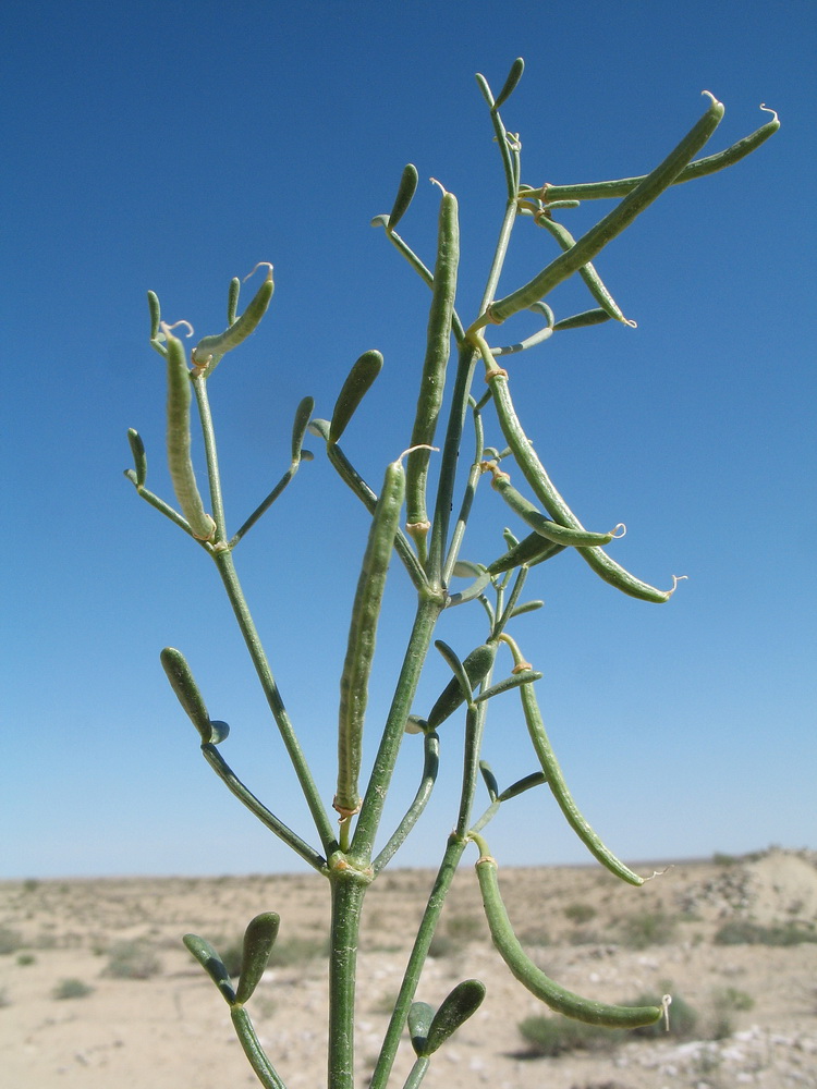 Плодоносящее растение с божьей коровкой. Казахстан, Мангистауская обл., Каракиянский р-н, Устюртский запов.; разрушенные останцы у юго-зап. части впадины Карын-Жарык, окр. род. Онере, загипсованные глины. 9 мая 2024 г.