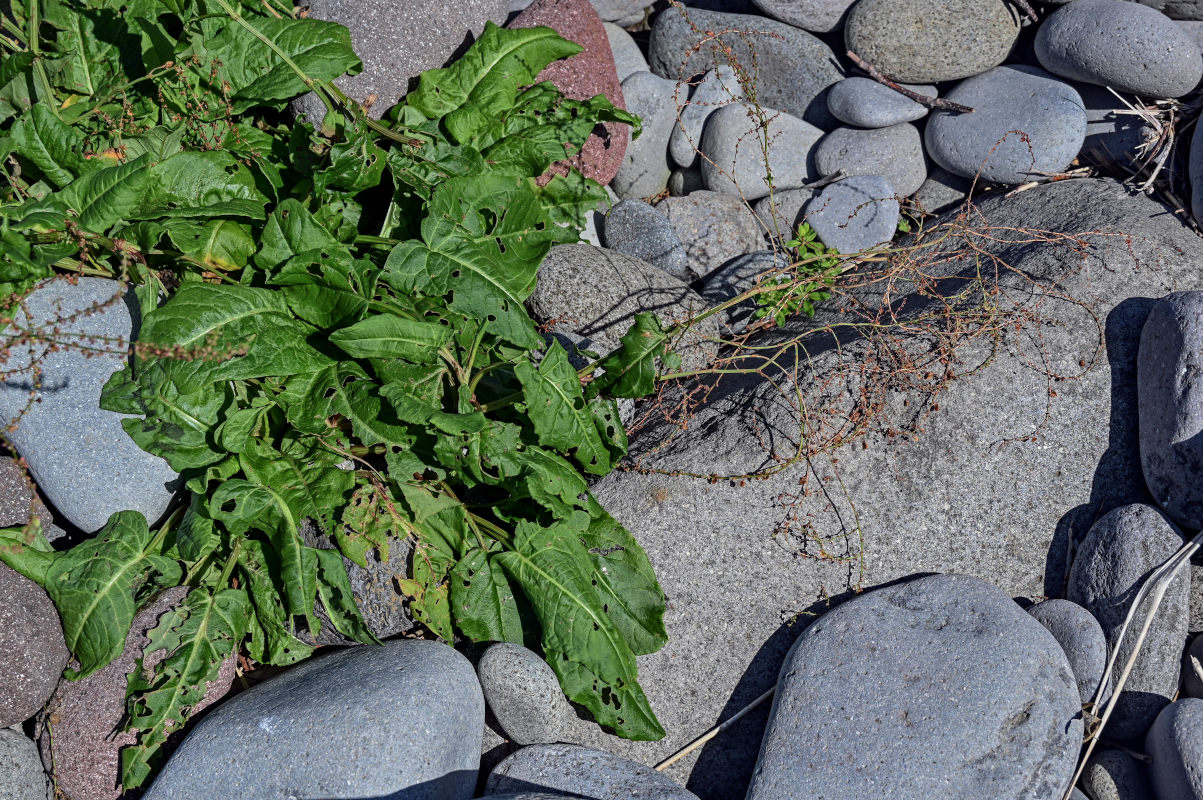 Цветущее и плодоносящее растение. Курильские о-ва, о-в Итуруп, долина р. Водопадная, каменистый пляж. 19.08.2023.