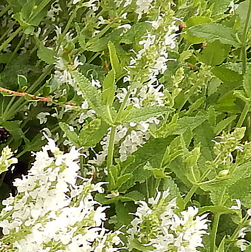 Цветущие растения (белоцветковый культивар). Карелия, Сортавальский р-н, о. Валаам, в культуре. Июль 2024 г.