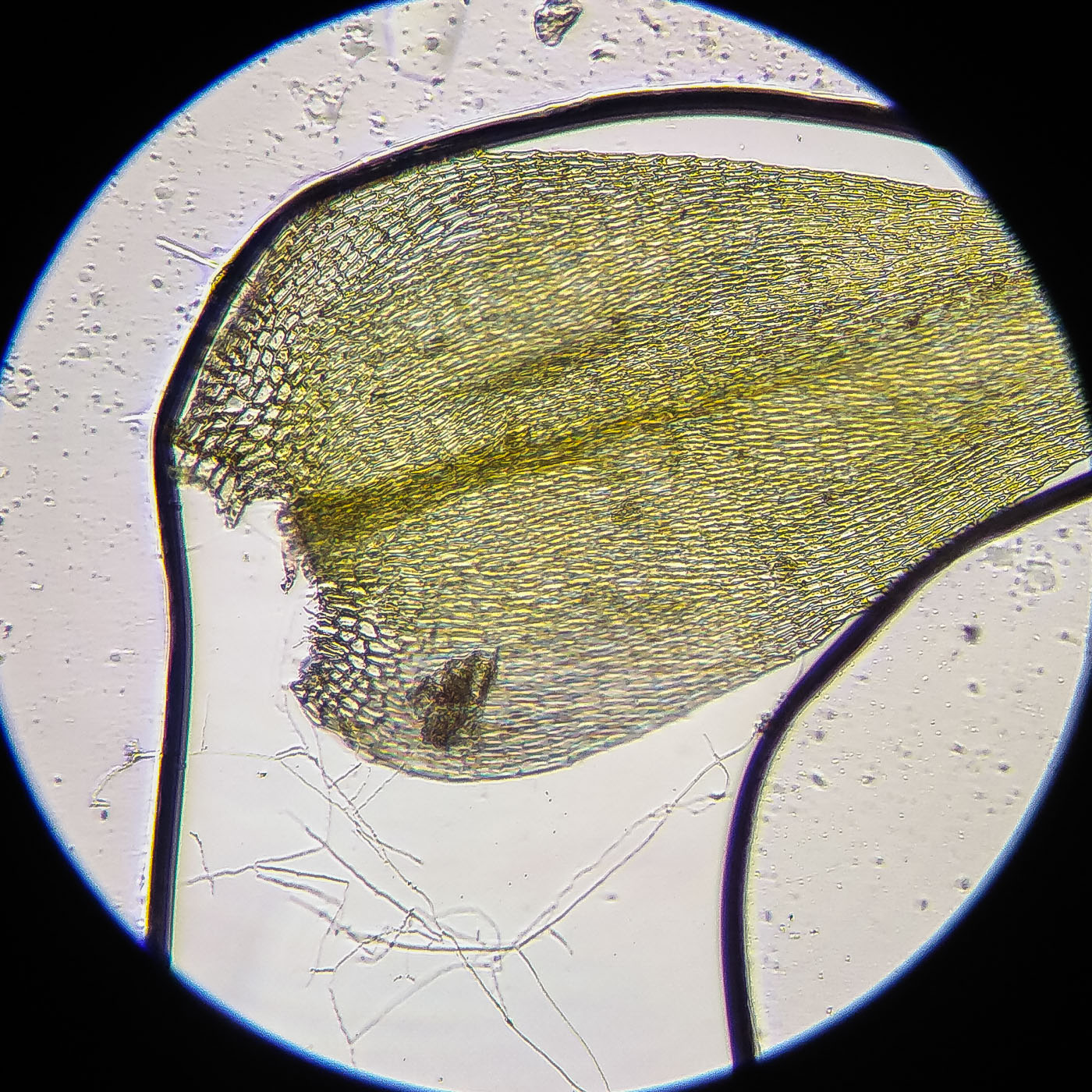| Aleksandr Kozlovskikh | Стеблевые листья к основанию резко закругленные и б. м. узко низбегающие, клетки на изгибе основания тонкостенные, образуют б.м. крупную, хорошо заметную группу, не достигающую края листа — Brachythecium rutabulum . |