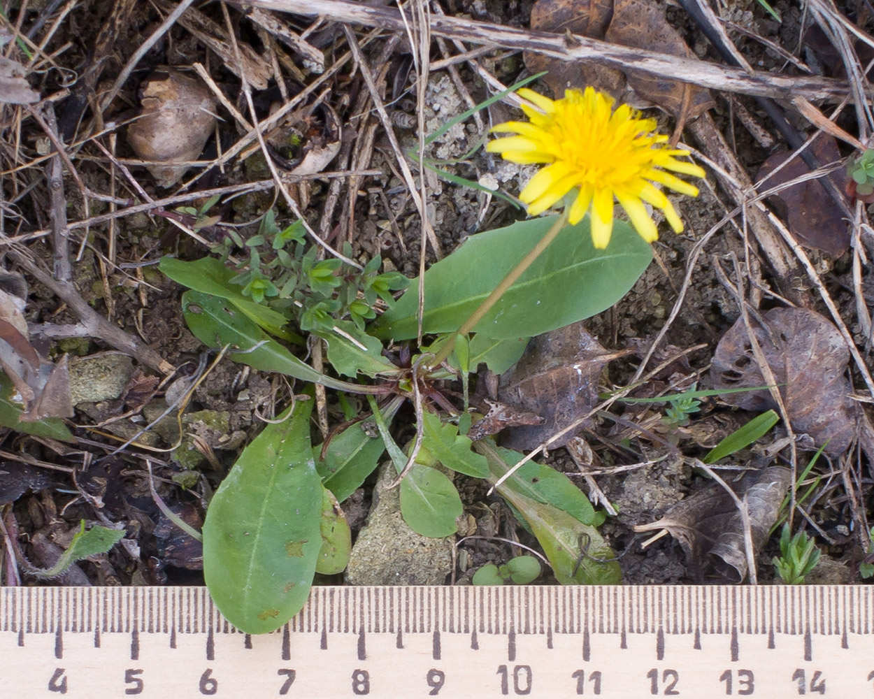 Цветущее растение. Краснодарский край, Крымский р-н, окр. станицы Неберджаевская, задернованное скальное обнажение на месте старого заросшего карьера. 02.04.2025.