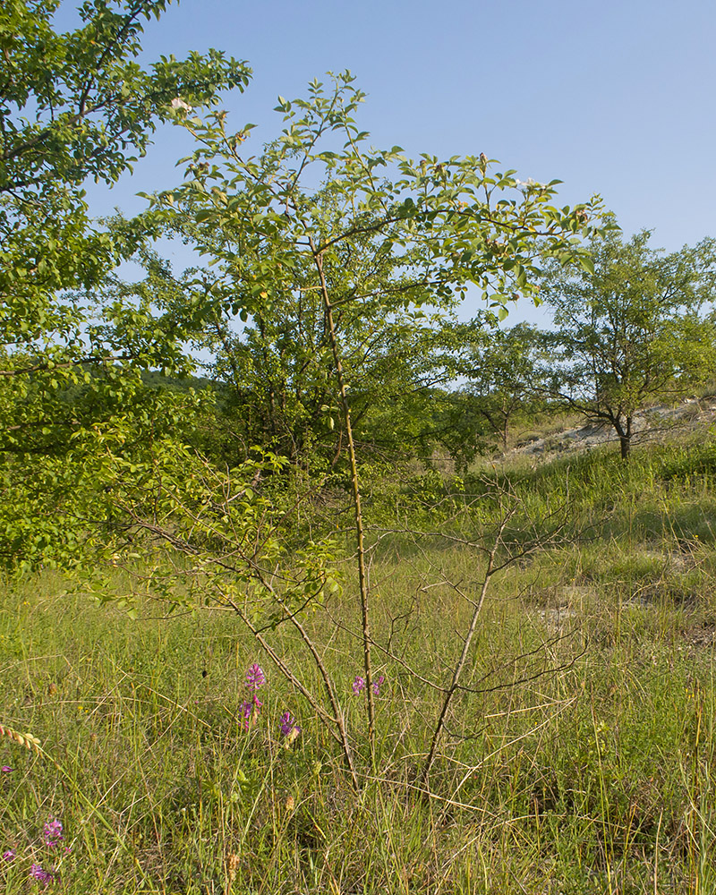 Верхушка побега с незрелыми плодами. Краснодарский край, Крымский р-н, окр. станицы Неберджаевская, дно заброшенного карьера, на обломках мергеля. 06.06.2025.