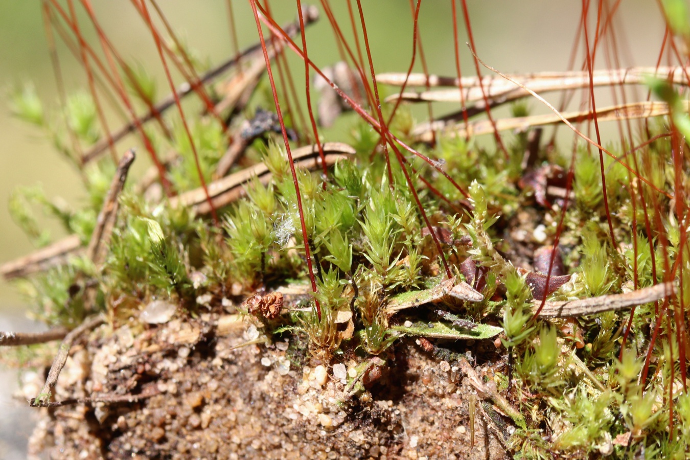 Растения со спорогонами. Беларусь, Витебская обл., Городокский р-н, заказник "Сурмино", окр. оз. Белое, сосняк из Pinus sylvestris на песке, обочина грунтовой дороги. 02.05.2025.