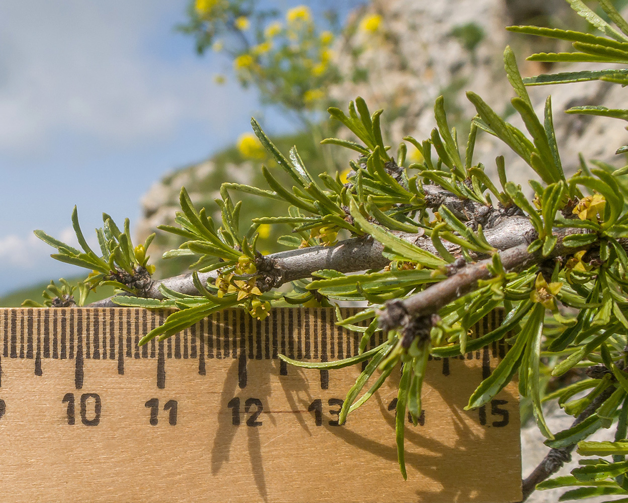 Цветущее растение. Карачаево-Черкесия, Зеленчукский р-н, гора Джангур, ≈ 1500 м н.у.м., в расщелине известняковой скалы. 04.06.2025.