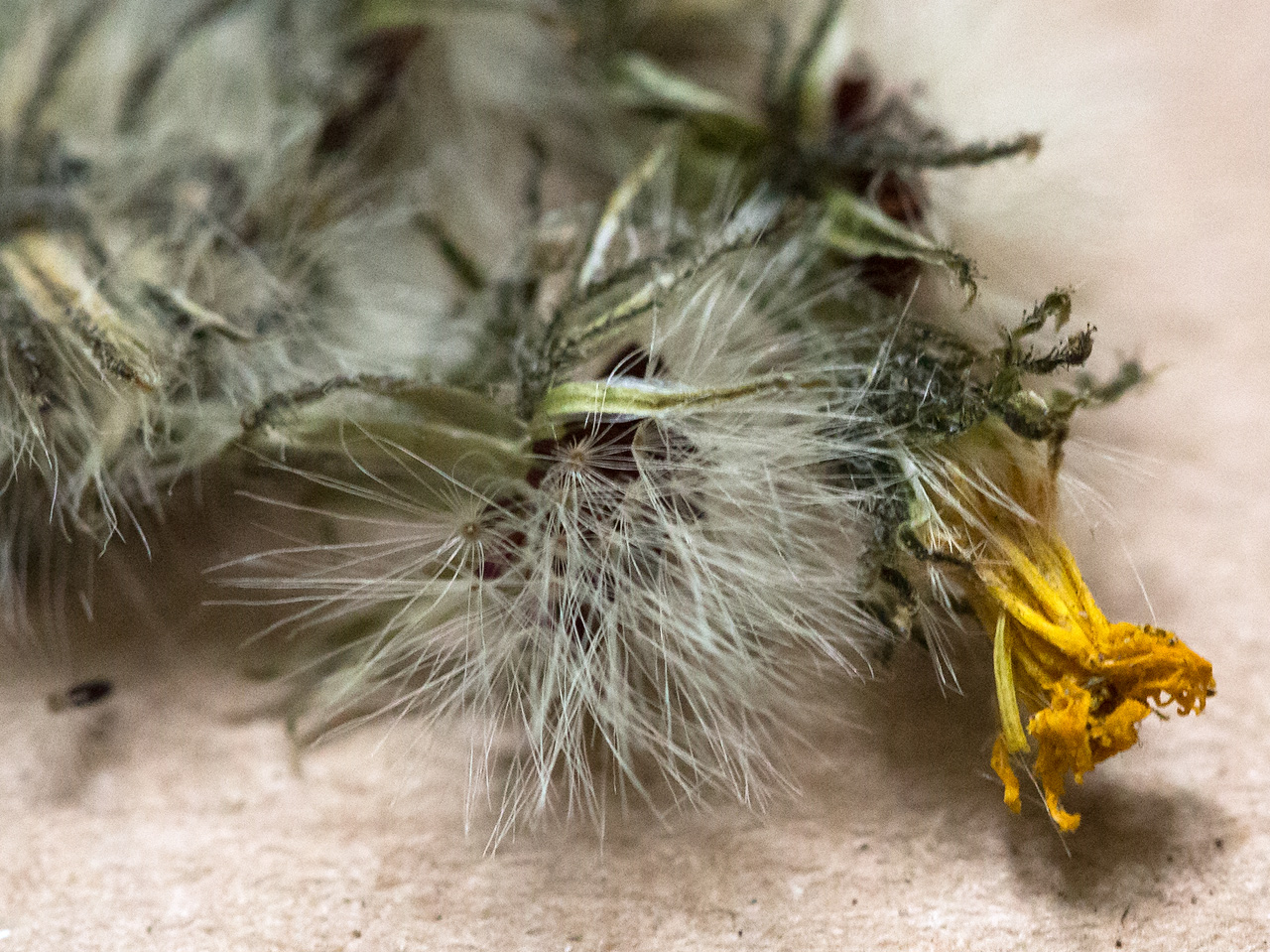 Но дальше, что касается "с единичными железками, серовойлочные, с быстро убывающим книзу звездчатым пушком" — не понятно, бинокуляра нет, разглядеть ничего не могу. Тут тоже — "прицветные л. темные со светлой каймой; обертки 6—7 мм дл., цилиндрические; лч. оберток широковатые острые, черноватые, с ясной, б. ч. широкой светрой каймой" — не могу разглядеть светлую кайму, или её нет.