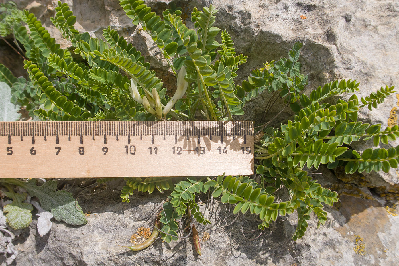 Цветущее и плодоносящее растение. Карачаево-Черкесия, Зеленчукский р-н, гора Джангур, ≈ 1500 м н.у.м., в расщелине известняковой скалы. 04.06.2025.