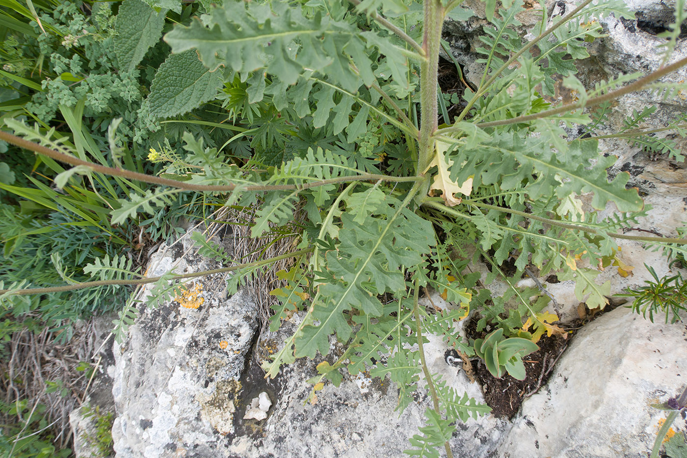 Цветущее растение. Карачаево-Черкесия, Зеленчукский р-н, гора Джангур, ≈ 1500 м н.у.м., в расщелине известняковой скалы. 04.06.2025.
