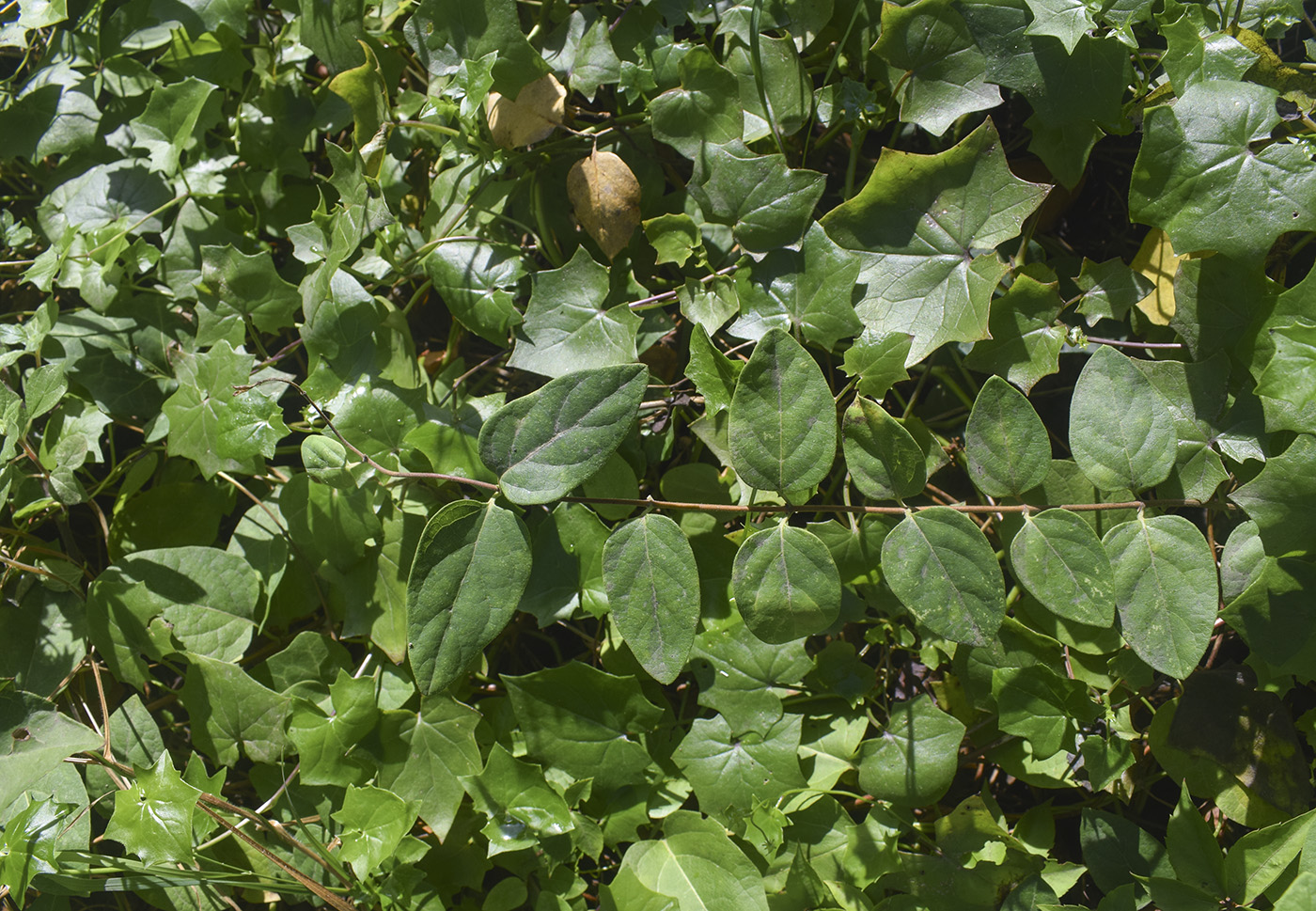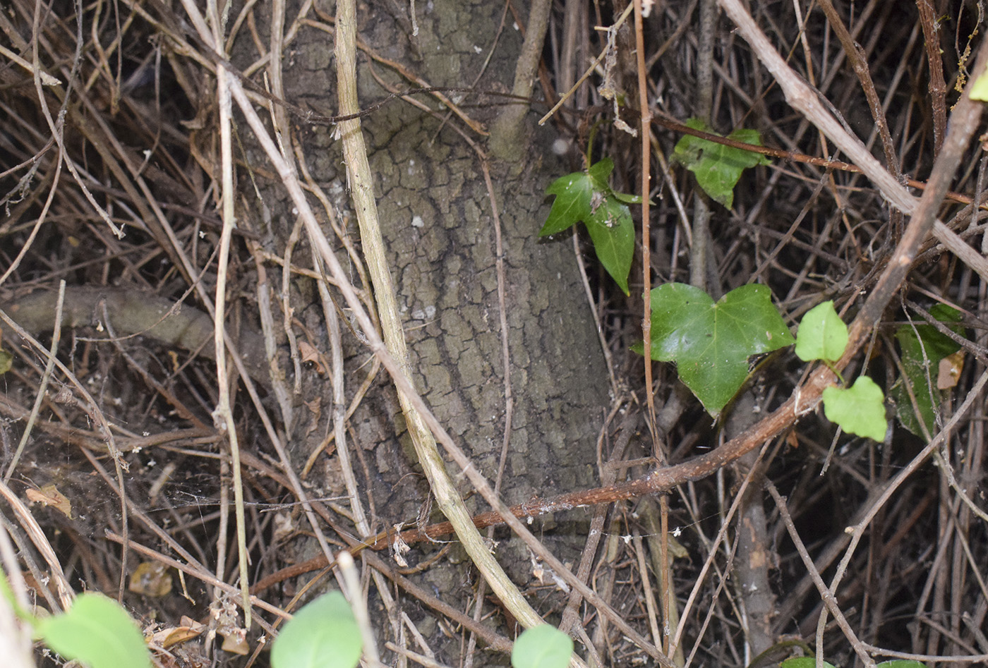 И под этой цветущей копной погребена некая опора, возможно дуб Quercus ilex был, рядом там растут ещё не столь обвешанные лианами. |