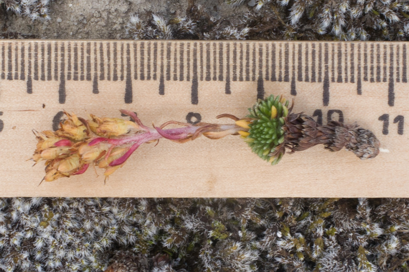 Плодоносящее растение на моховой подушке. Кабардино-Балкария, Черекский р-н, дол. р. Псыгансу, ≈ 2400 м н.у.м., донная морена. 29.07.2025.