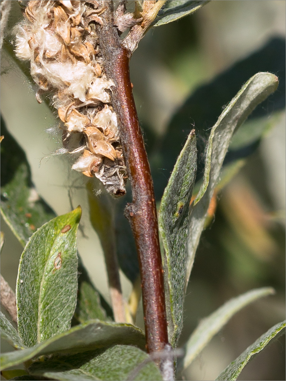Часть веточки с соплодием. Карелия, восточный берег оз. Топозеро, облесённый край песчаного пляжа у границы с низинным болотом. 01.08.2025.
