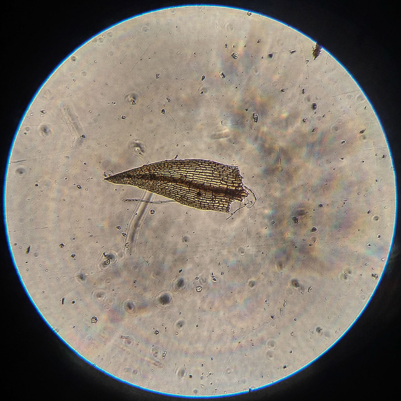 У обсуждаемого образца хорошо видно, что жилка явно не дотягивает до верхушки — признак B.convoluta |