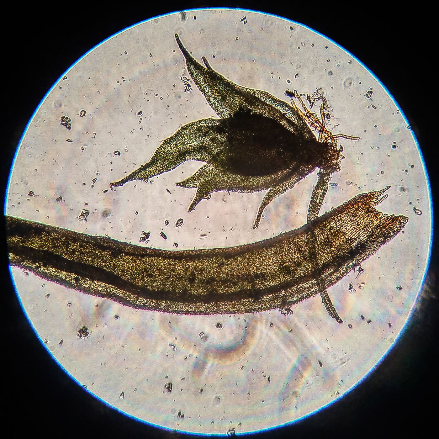 | Aleksandr Kozlovskikh | На полуметровой высоте с северной стороны ствола осины обыкновенной. Небольшая легко распадающаяся дерновинка с гладкими зрелыми коробочками и волосистыми колпачками: |