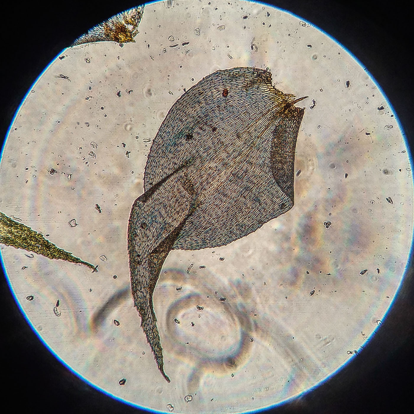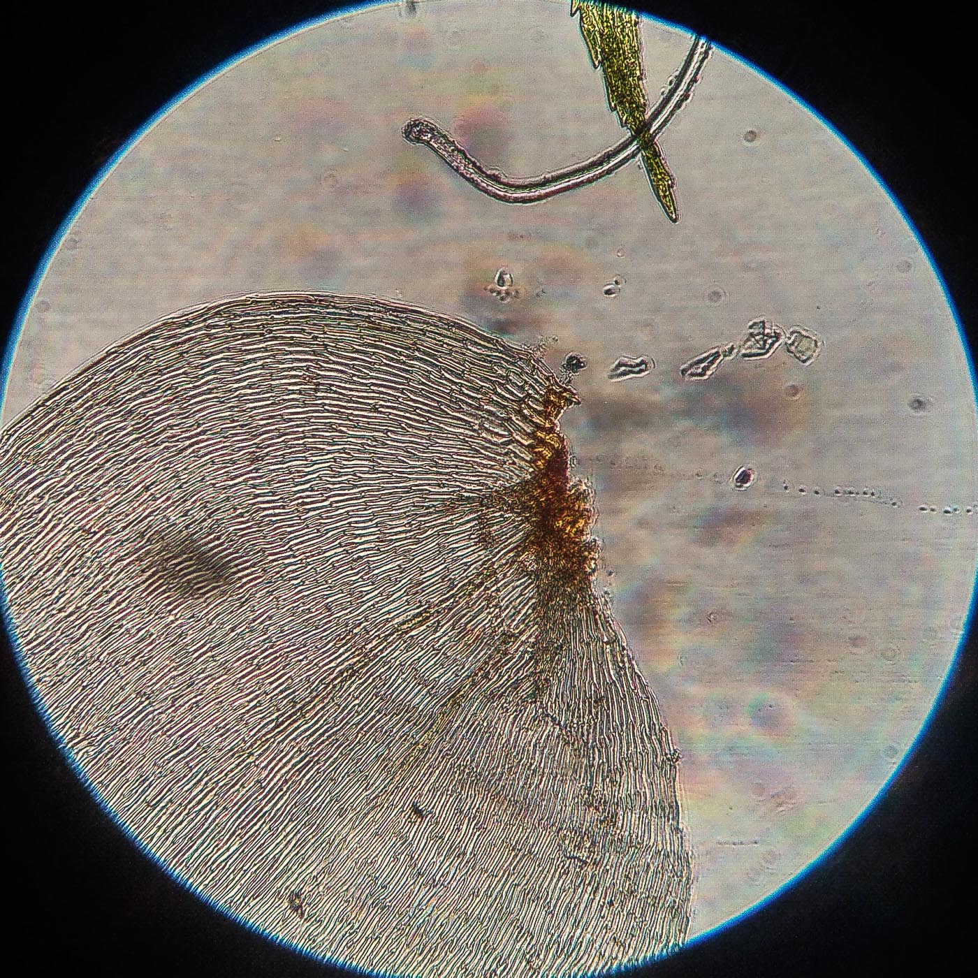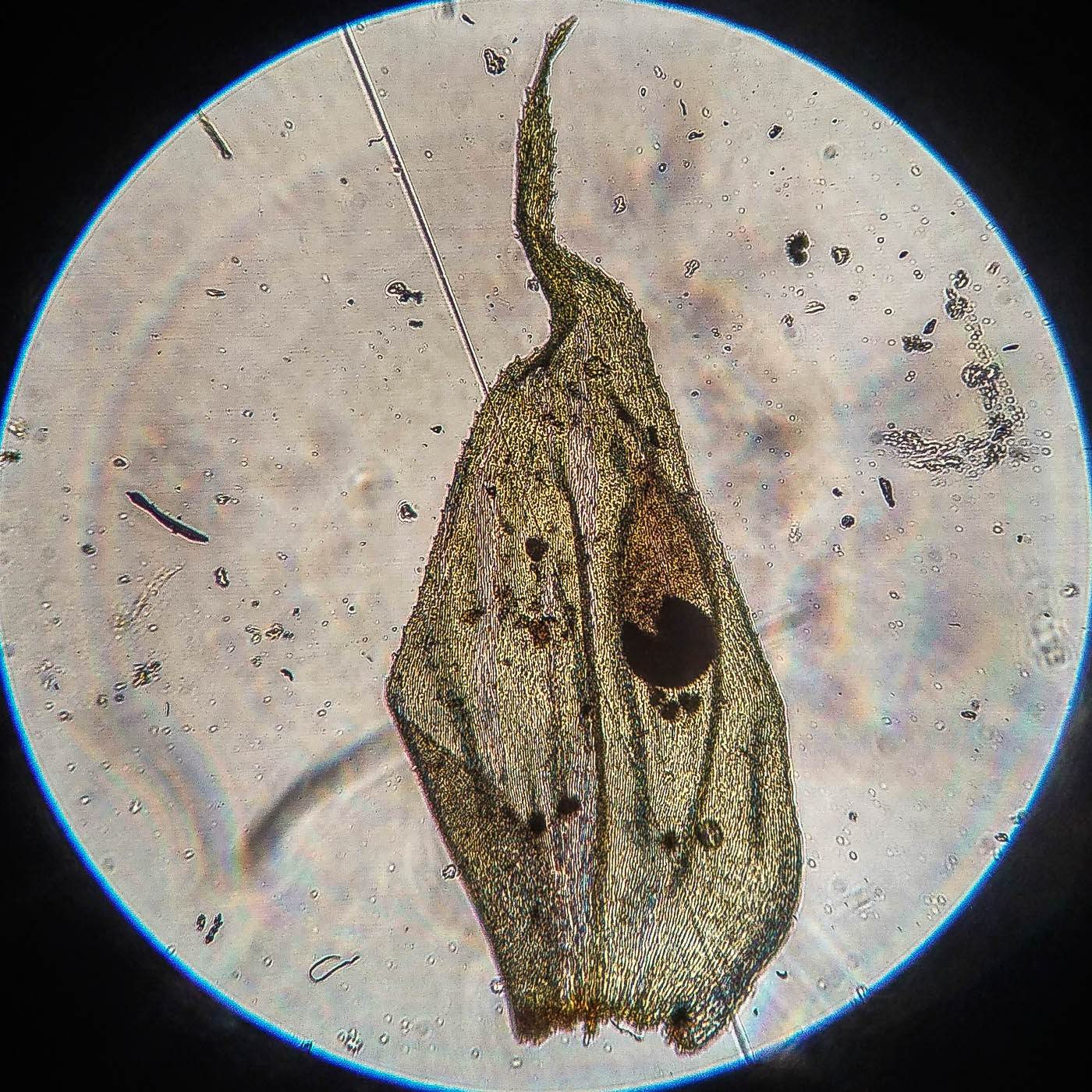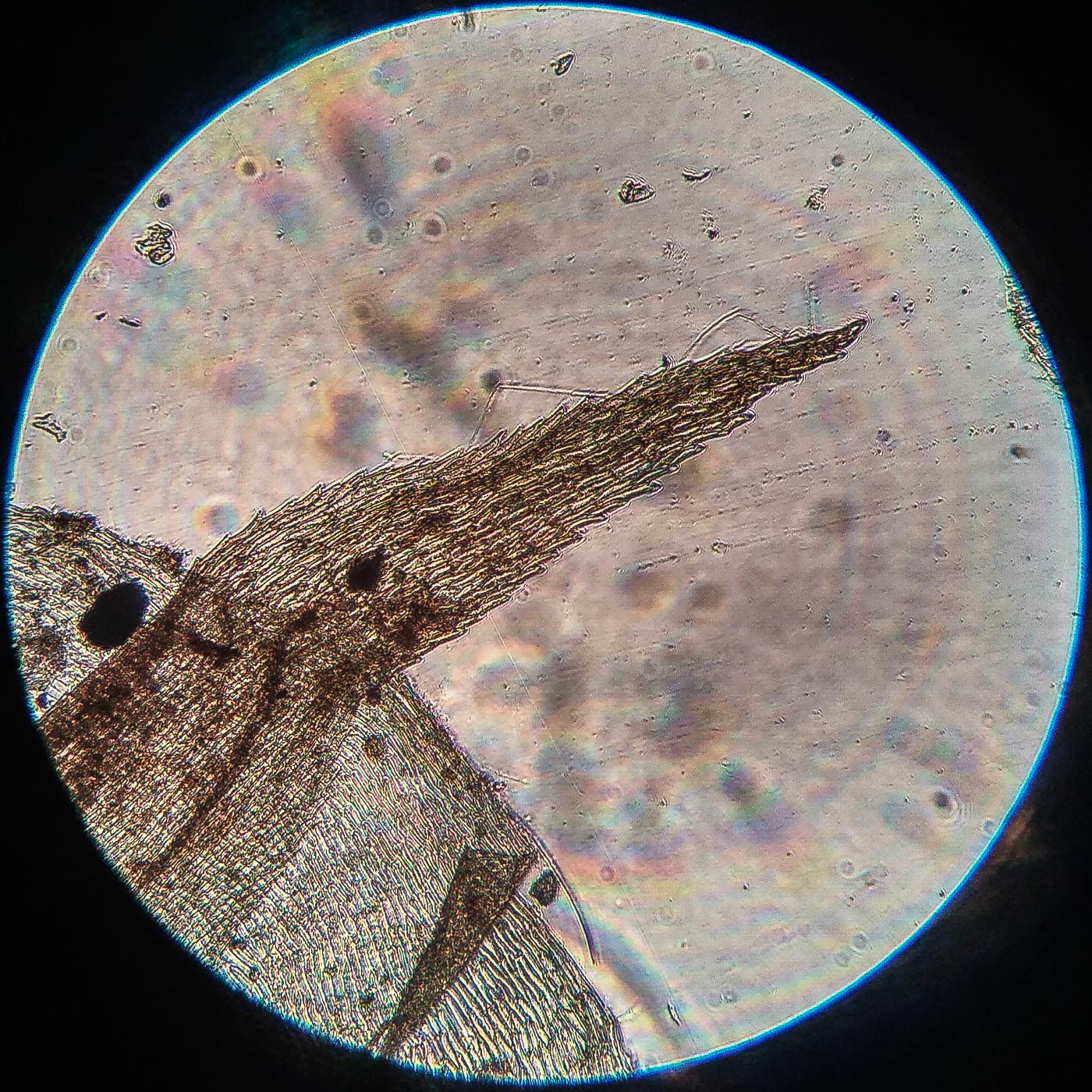 | Aleksandr Kozlovskikh | Довольно крупный мох, нас. зелёный, дерновинки обширные рыхлые, неправильно ветвящийся, всесторонне густо облиственный. Веточки к верхушке утончаются, стеблевые листья из широко яйцевидного основания быстро сужены в назад отогнутую, ланцетную верхушку. ( У Rhytidiadelphus subpinnatus стеблевые листья в основании широко сердцевидно-треугольные).
