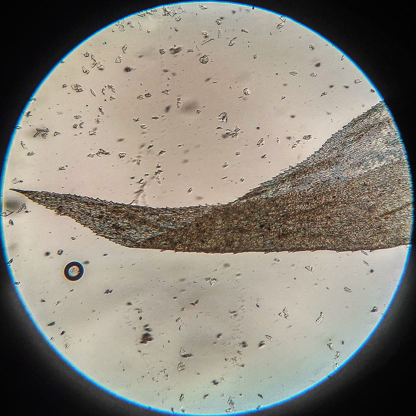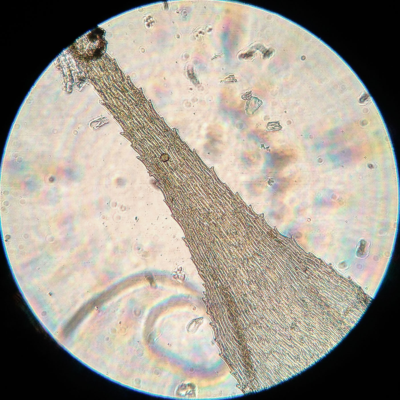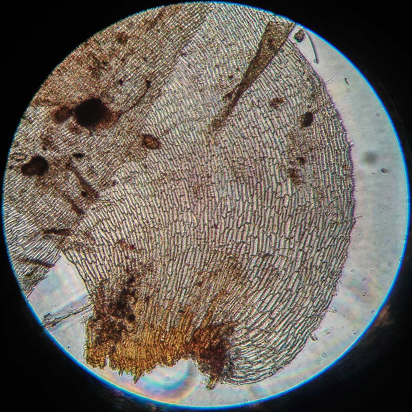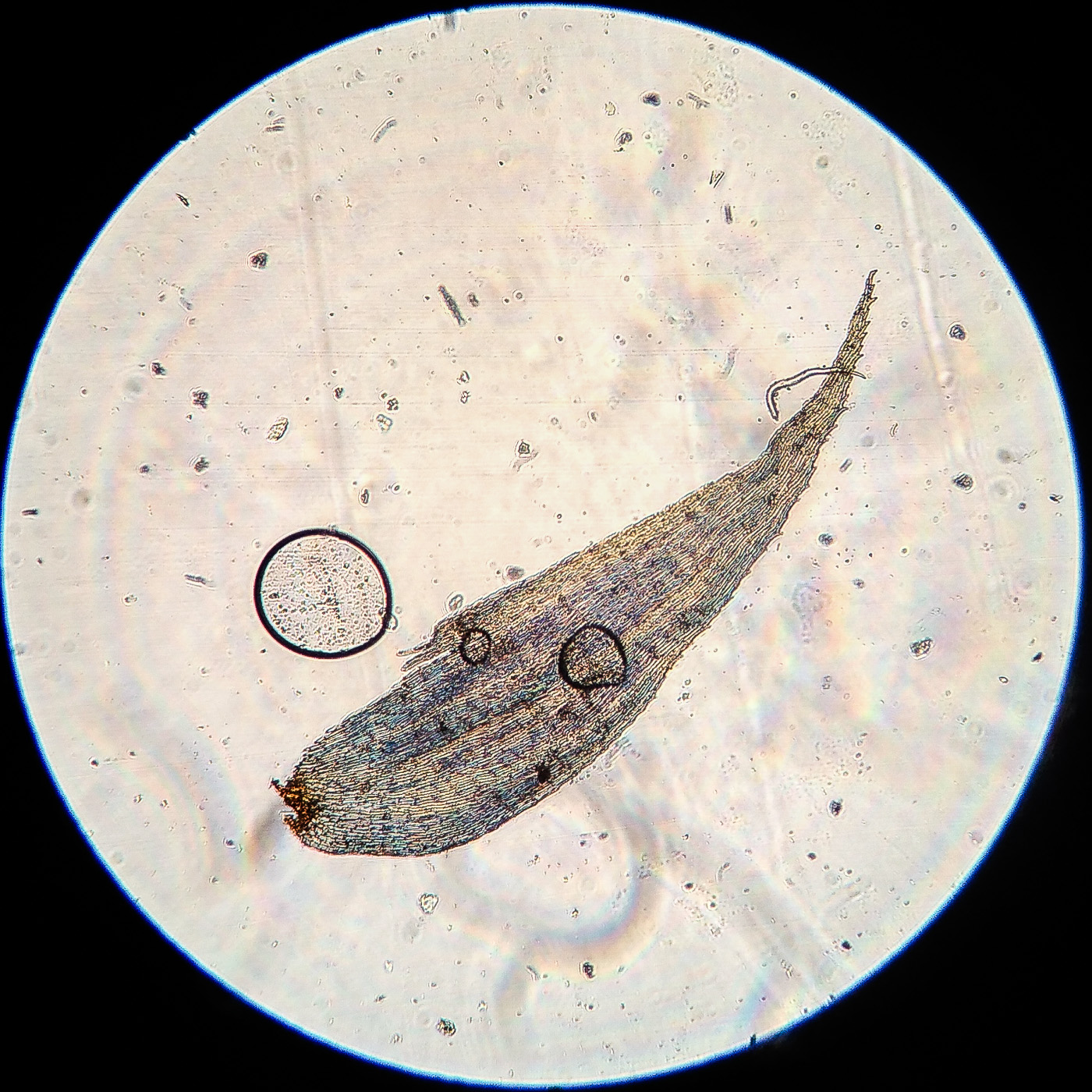| Aleksandr Kozlovskikh | Довольно крупный мох, нас. зелёный, дерновинки обширные рыхлые, неправильно ветвящийся, всесторонне густо облиственный. Веточки к верхушке утончаются, стеблевые листья из широко яйцевидного основания быстро сужены в назад отогнутую, ланцетную верхушку. ( У Rhytidiadelphus subpinnatus стеблевые листья в основании широко сердцевидно-треугольные).