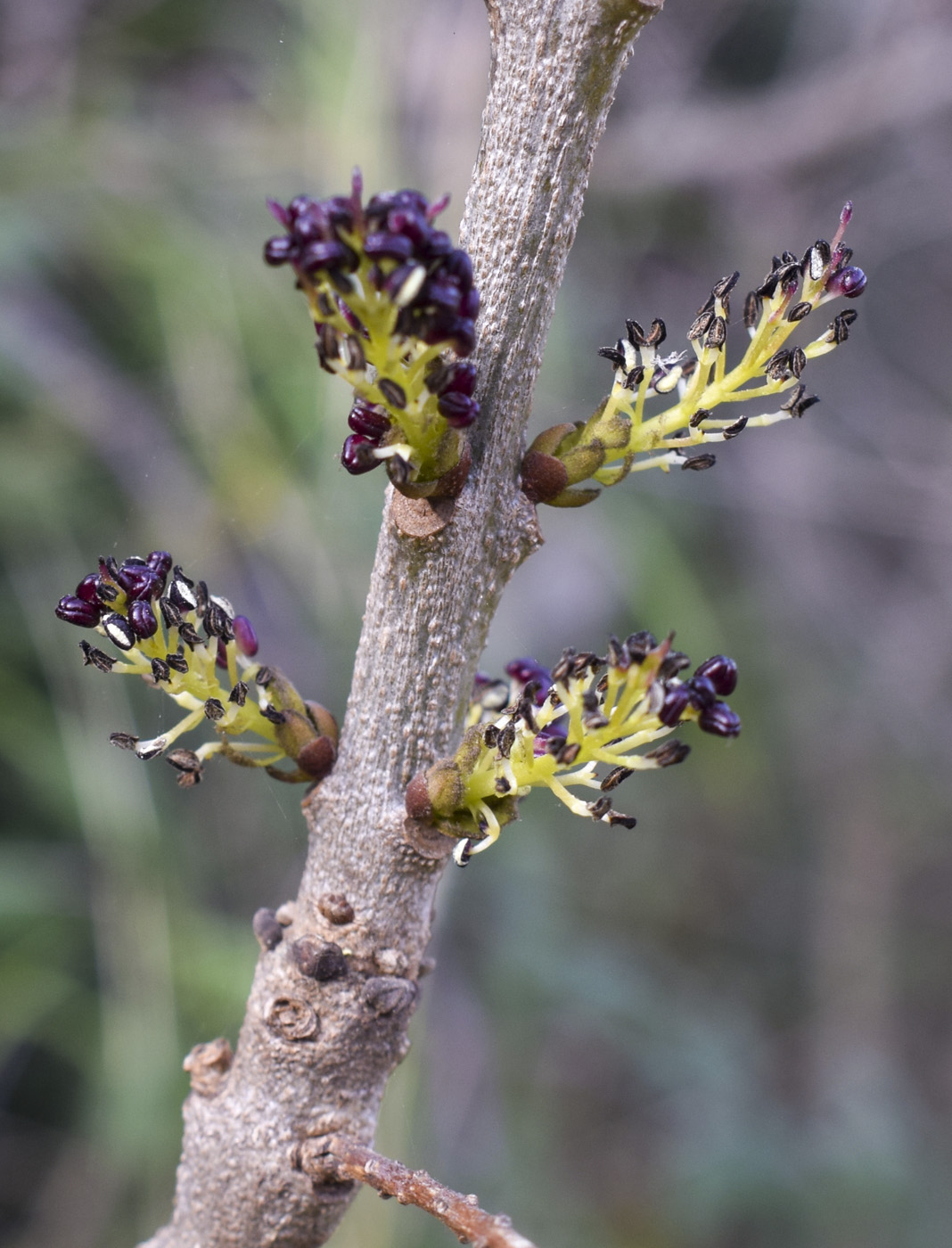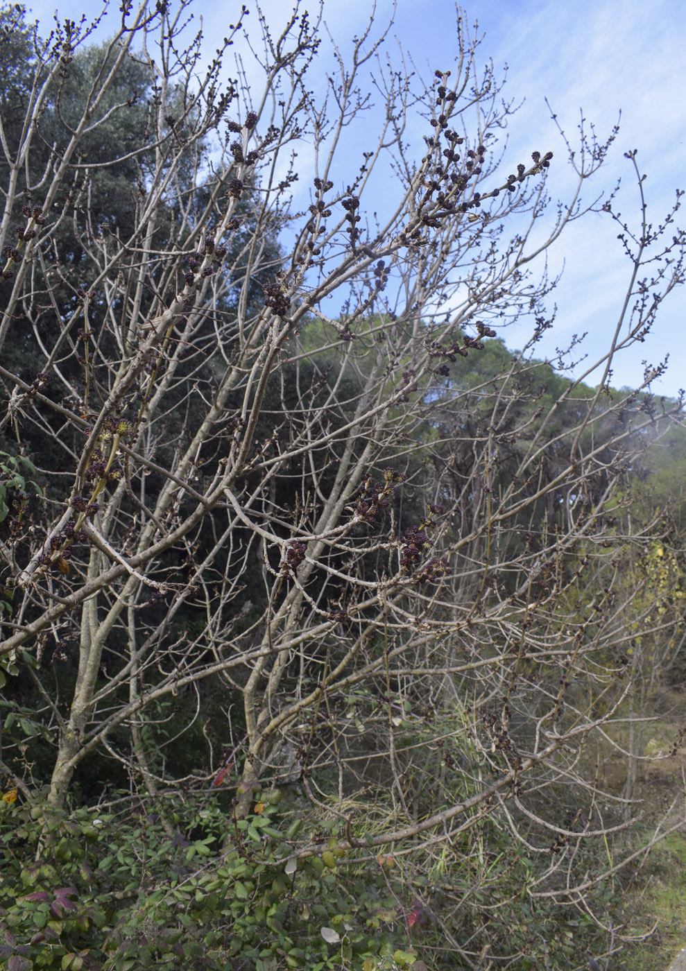 Верхушка веточки с соцветиями. Испания, Каталония, пров. Жирона, комарка Баш Эмпорда, муниципалитет Калонже, берег малой реки. 01.02.2026.