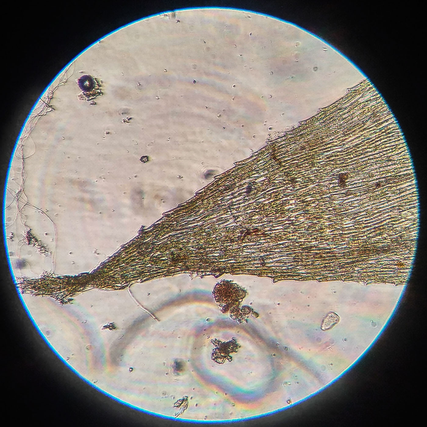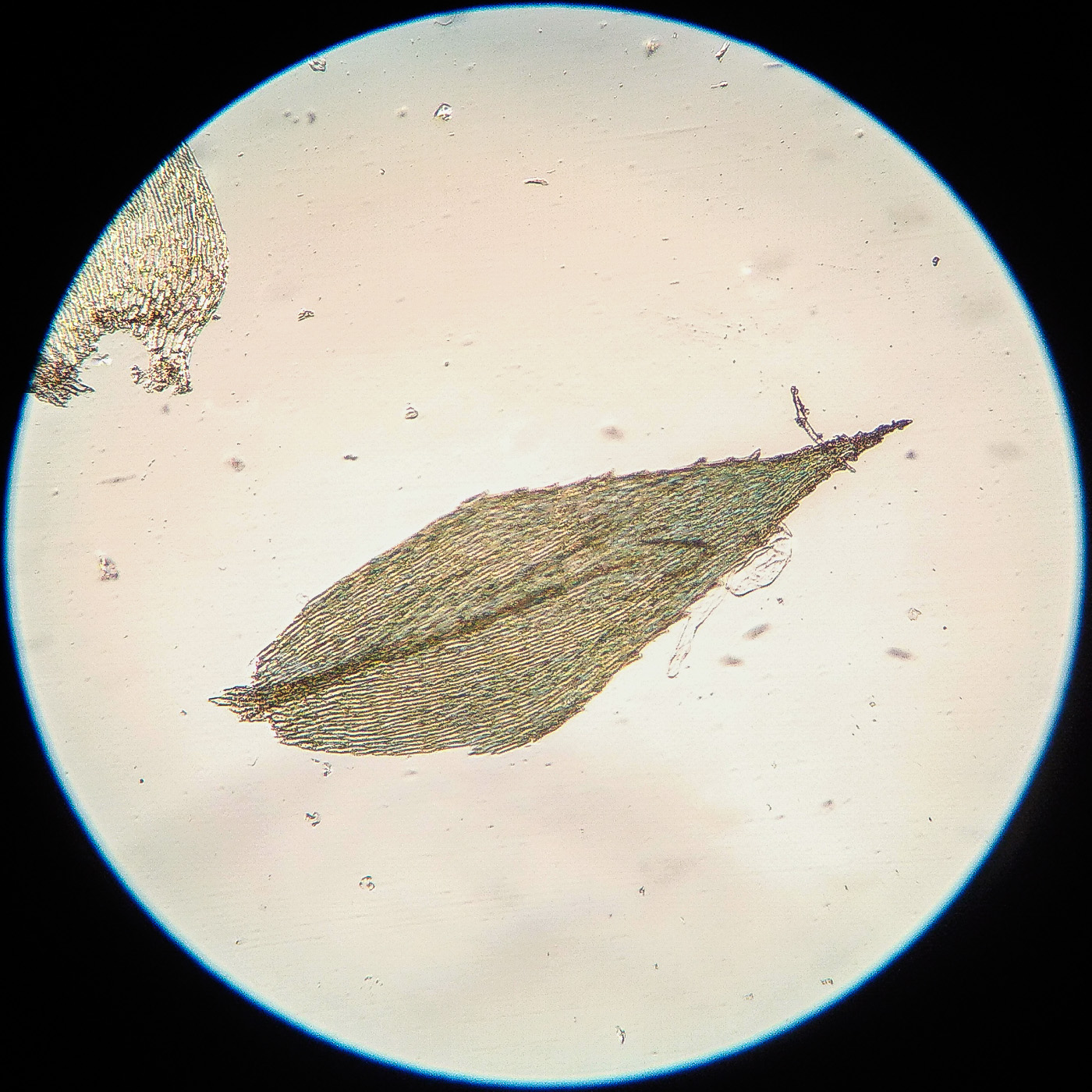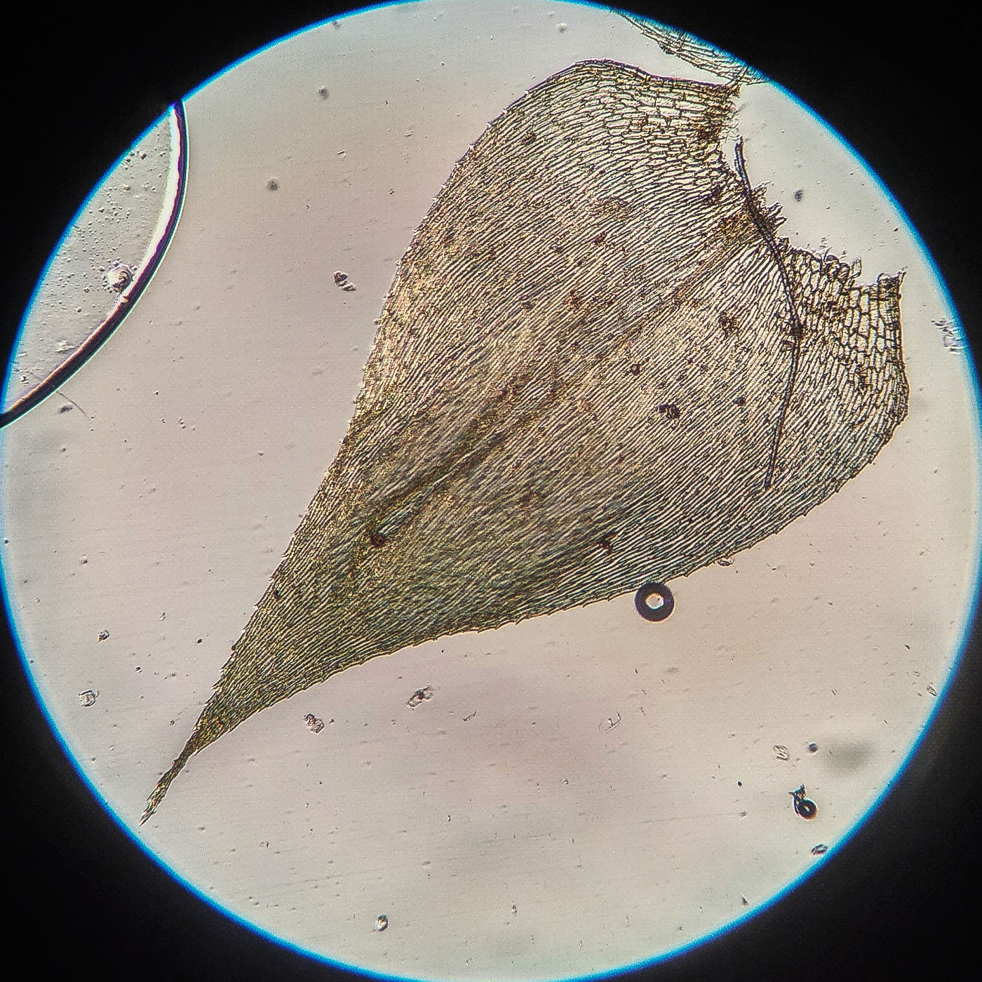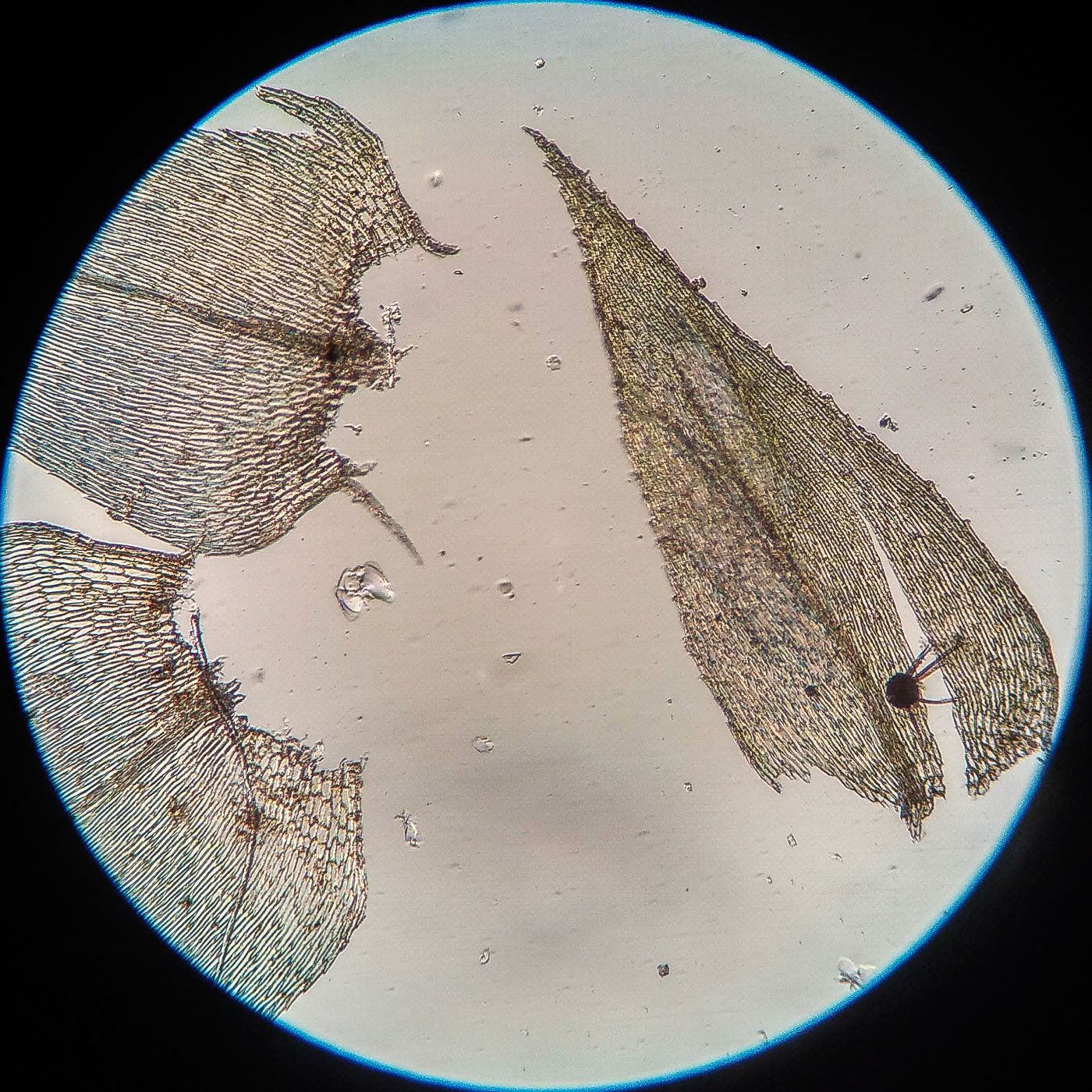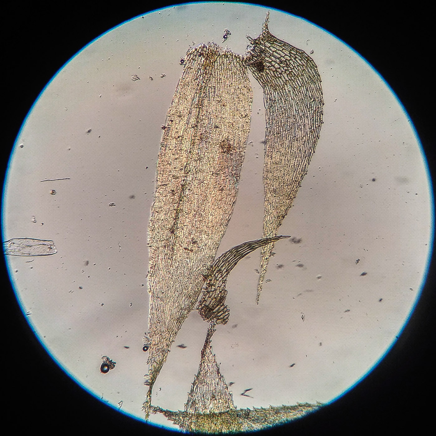 * клетки в середине листа линейные, извилистые, б.м толстостенные, к основанию постепенно более короткие и широкие, образующие б.м. прозрачную зону во всю ширину листа почти до жилки;