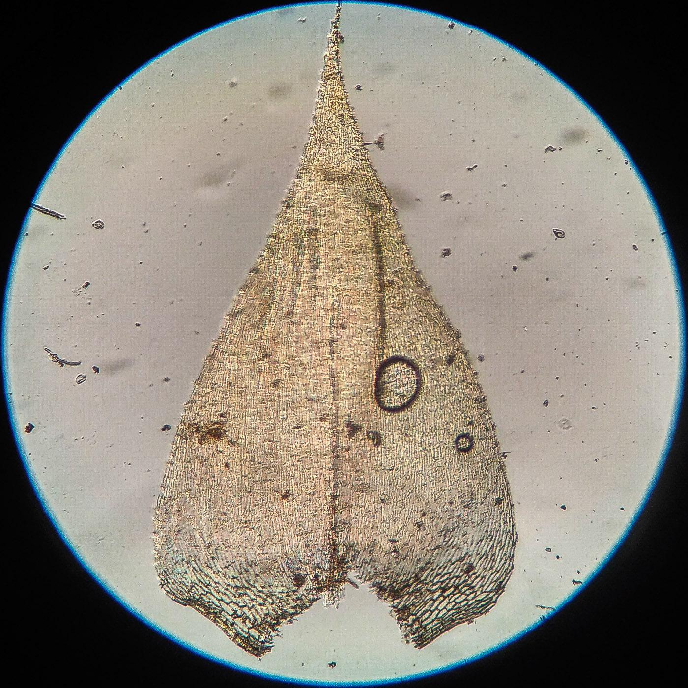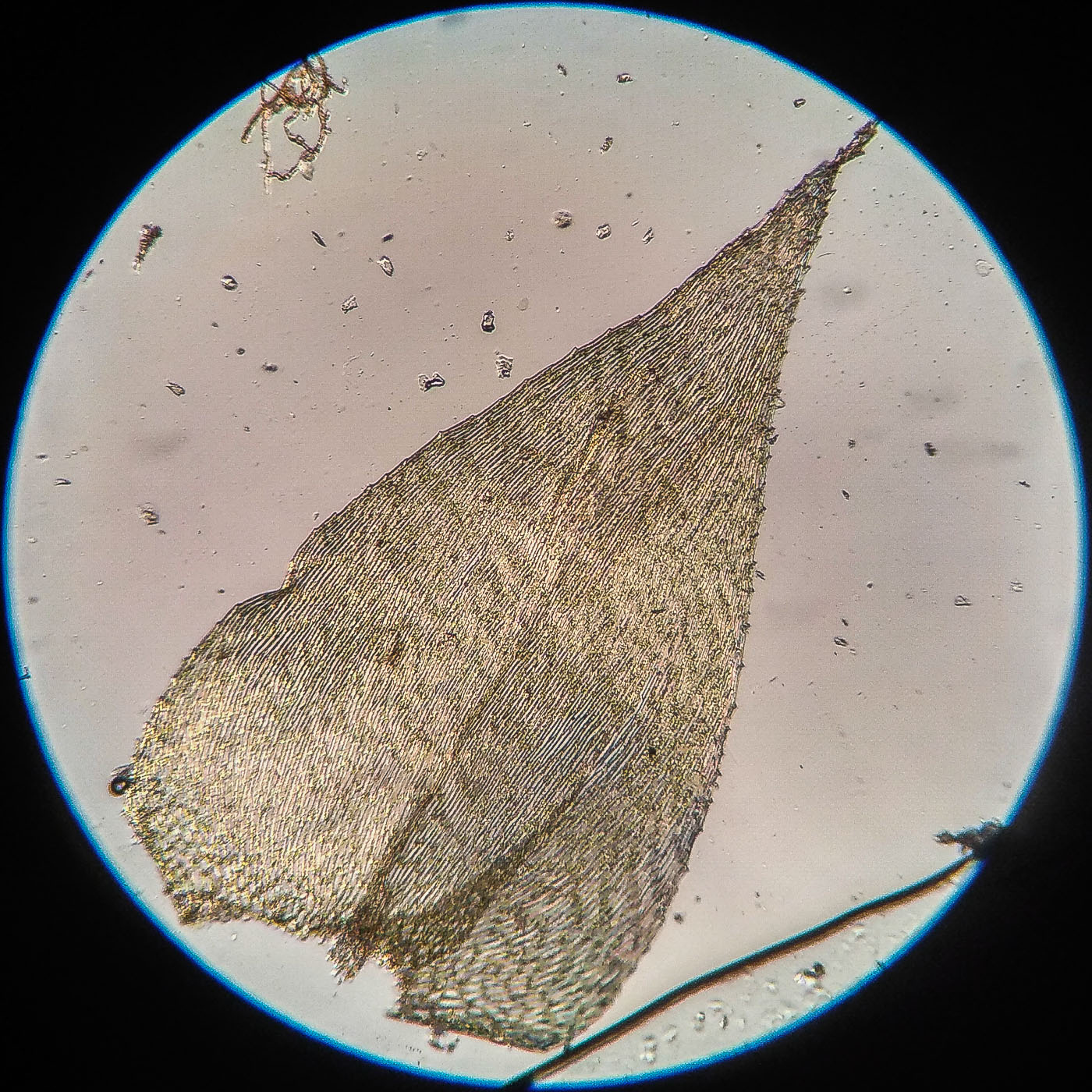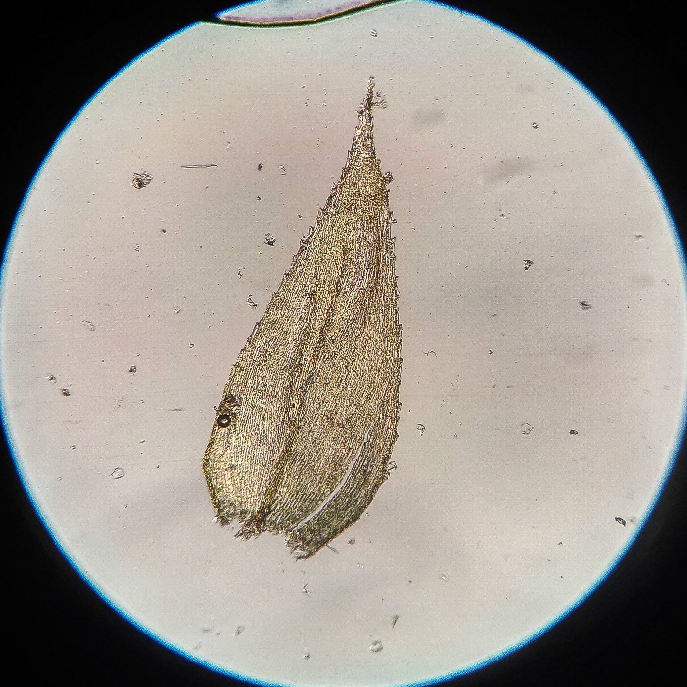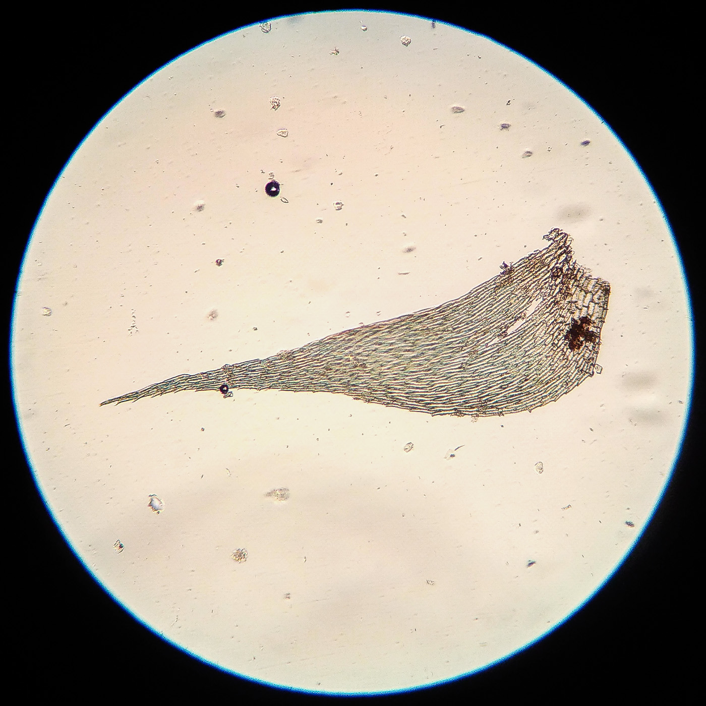 * клетки в середине листа линейные, извилистые, б.м толстостенные, к основанию постепенно более короткие и широкие, образующие б.м. прозрачную зону во всю ширину листа почти до жилки;