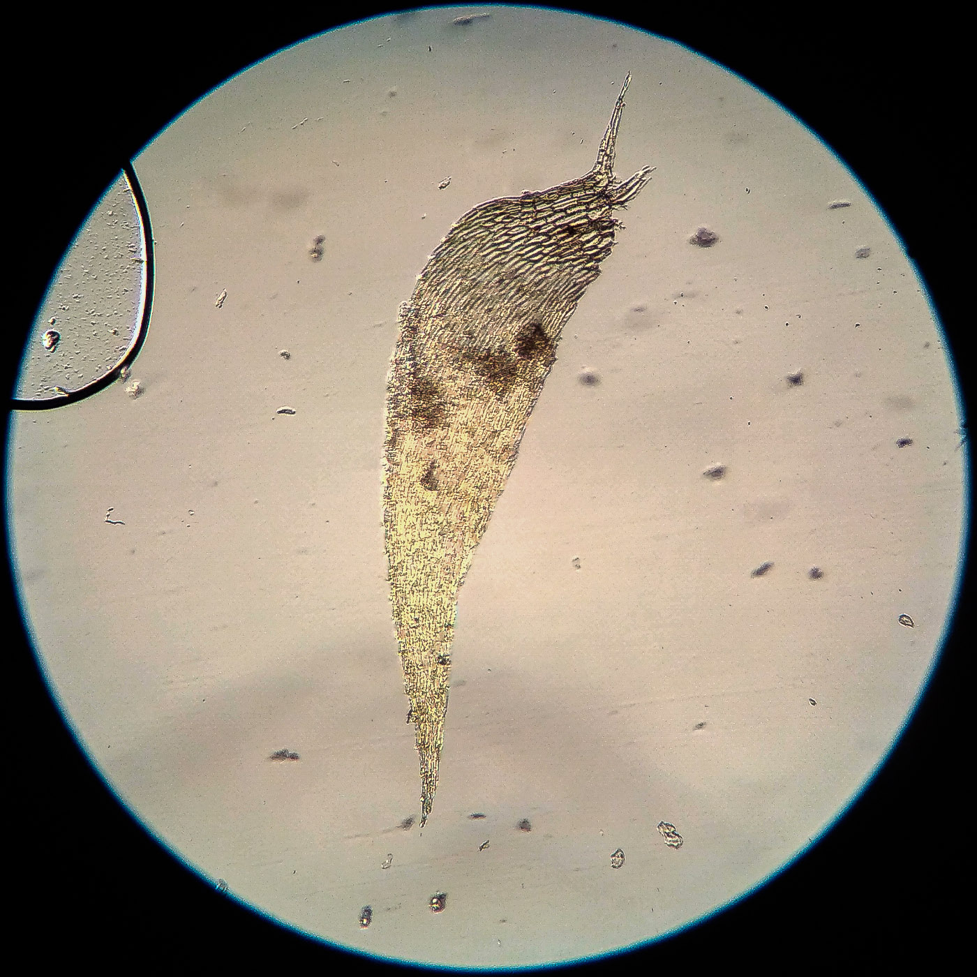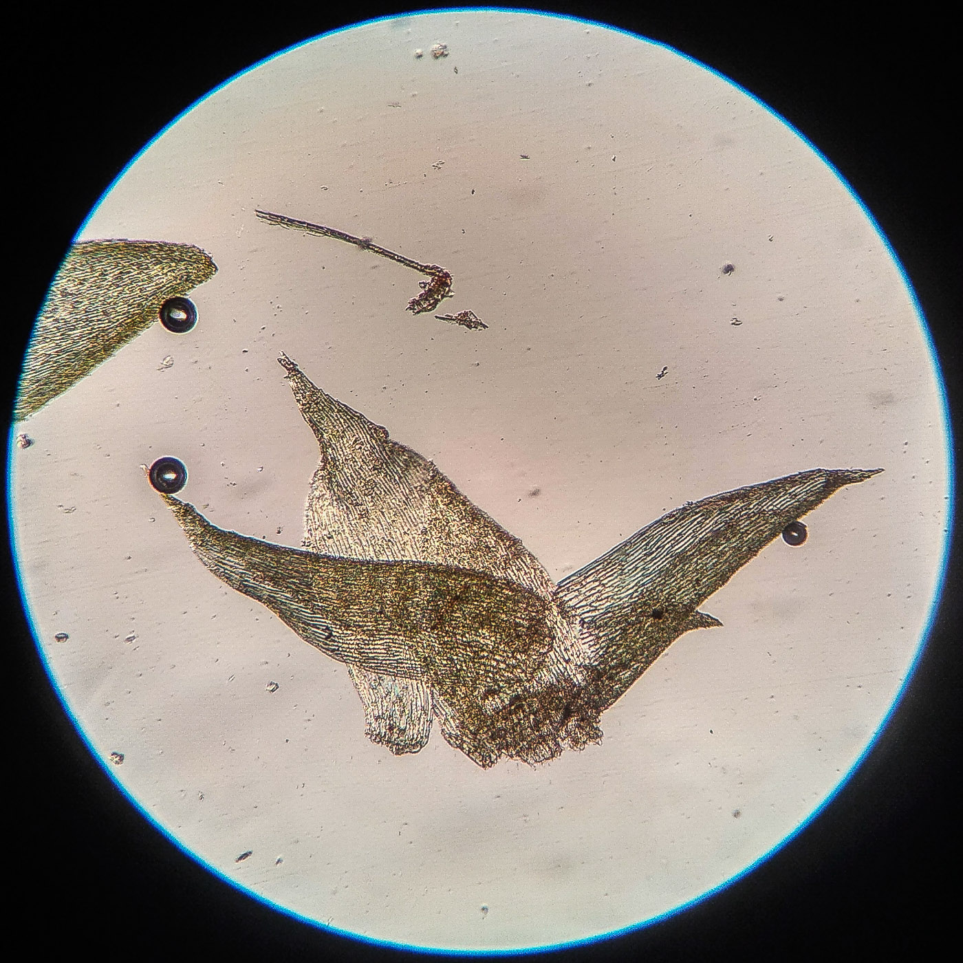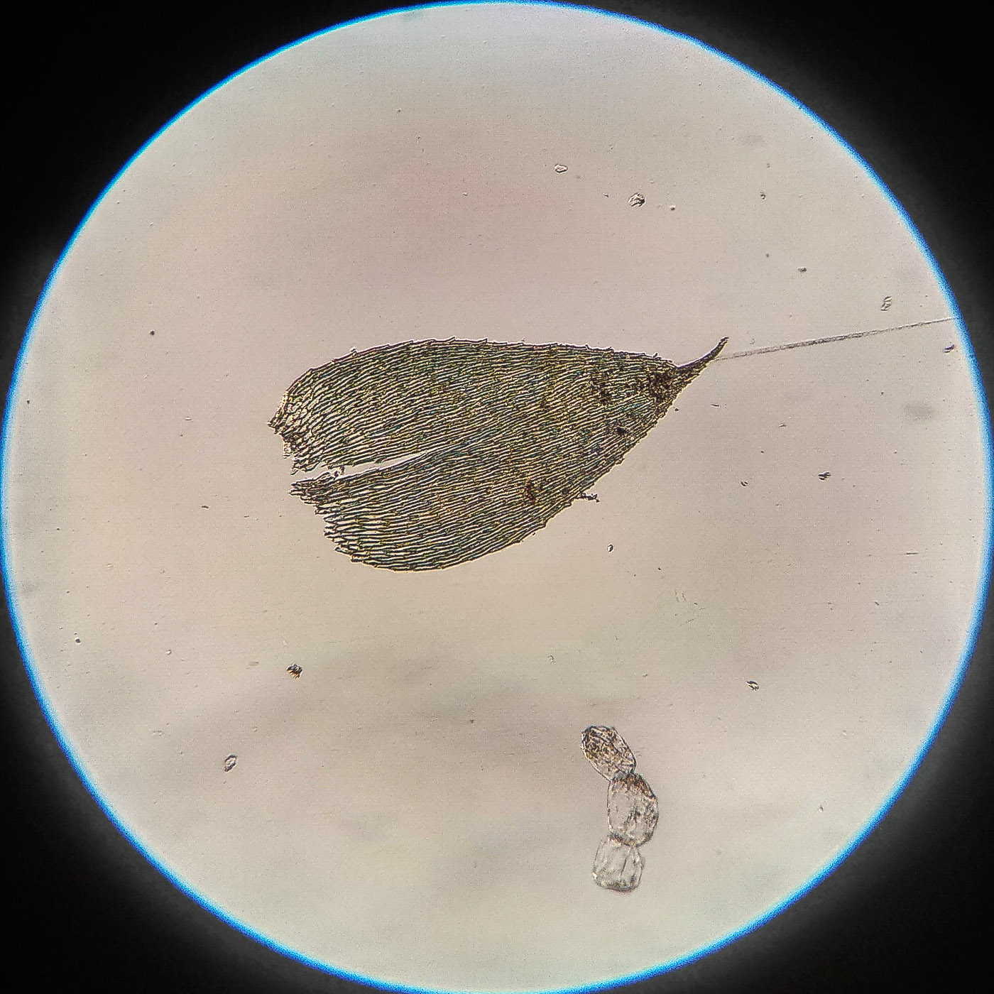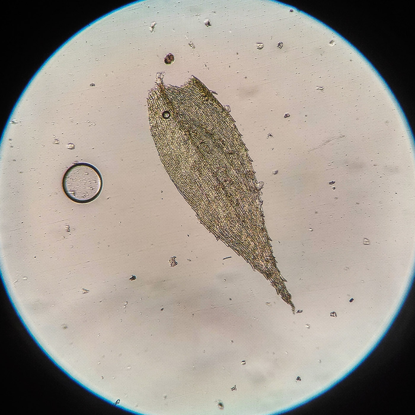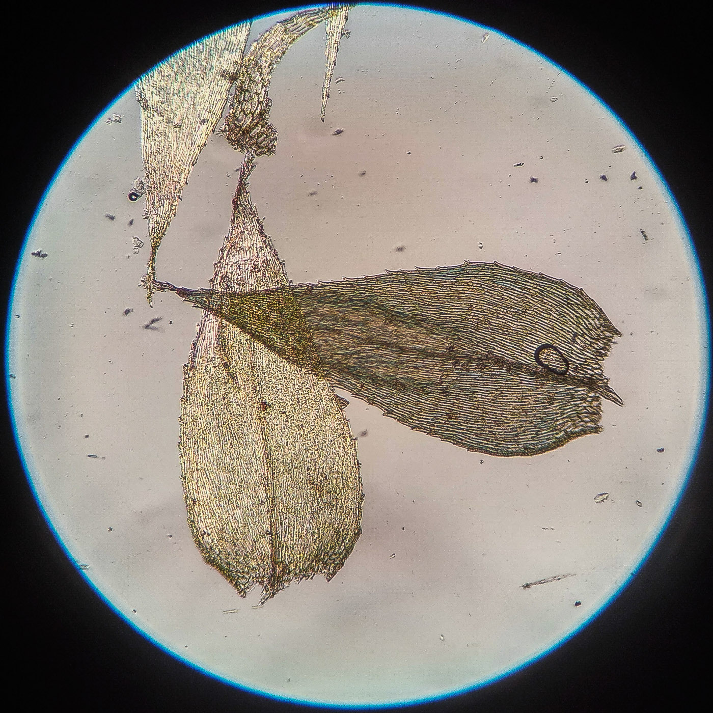 * клетки в середине листа линейные, извилистые, б.м толстостенные, к основанию постепенно более короткие и широкие, образующие б.м. прозрачную зону во всю ширину листа почти до жилки;
