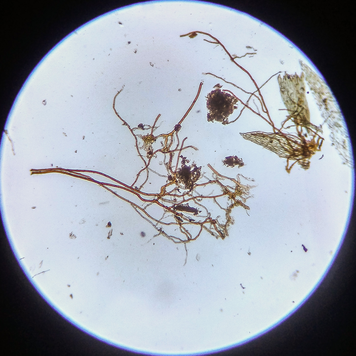 Верхушки веточек и спорогонов. Свердловская обл., окр. г. Заречный, заболоченный участок сосново-берёзового леса, на валеже. 16.10.2025.