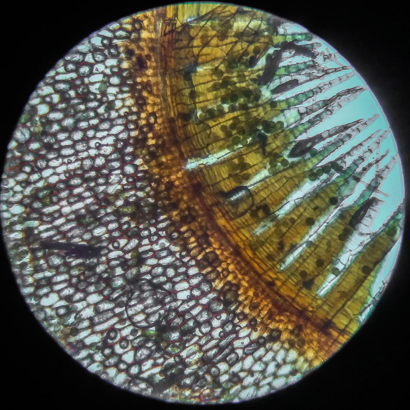 Стеблевые и веточные листья под микроскопом: |