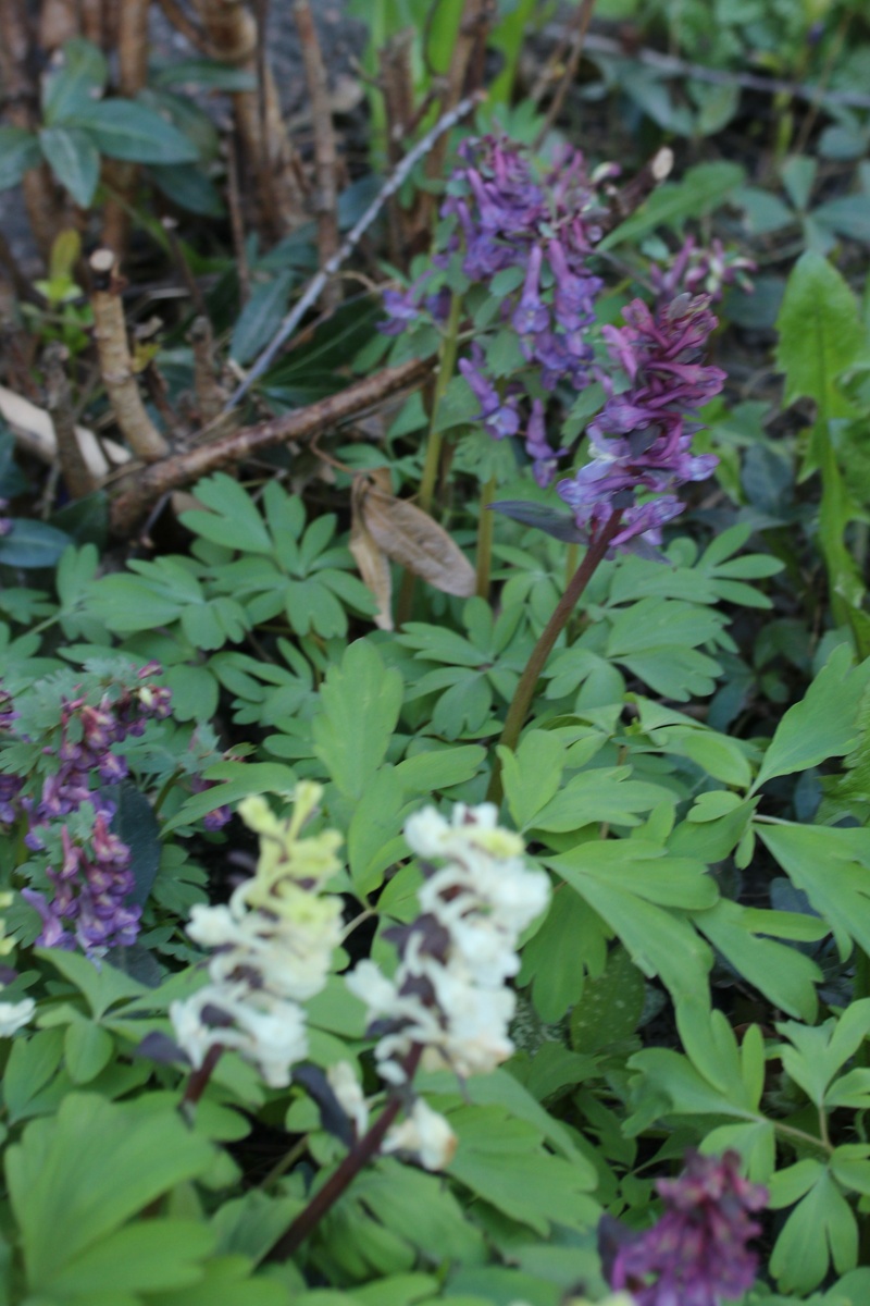Цветущие растения (белоцветковая форма?). Санкт-Петербург, Кировский р-н, палисадник у жилого дома. 19.04.2026.