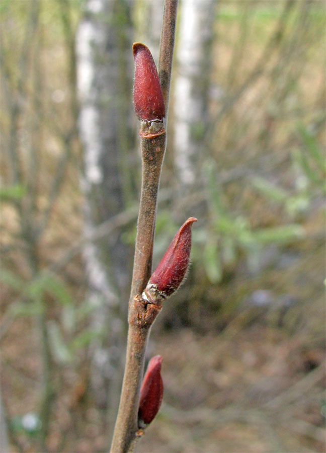 Побег женского растения с цветочными почками. Ярославская обл., Угличский р-н, берег пруда у дороги. 04.05.2011.