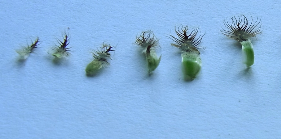| Andriy Kovalchuk | Упорство - это разобрать соцветие по листочку и всё это сфотографировать. Мало у кого хватает на это терпения. Особенно иллюстративны 1-ый и 3-ий снимки - в "неразобранном" виде придатки листочков обёртки перекрываются и понять, какой именно они формы, очень непросто. |