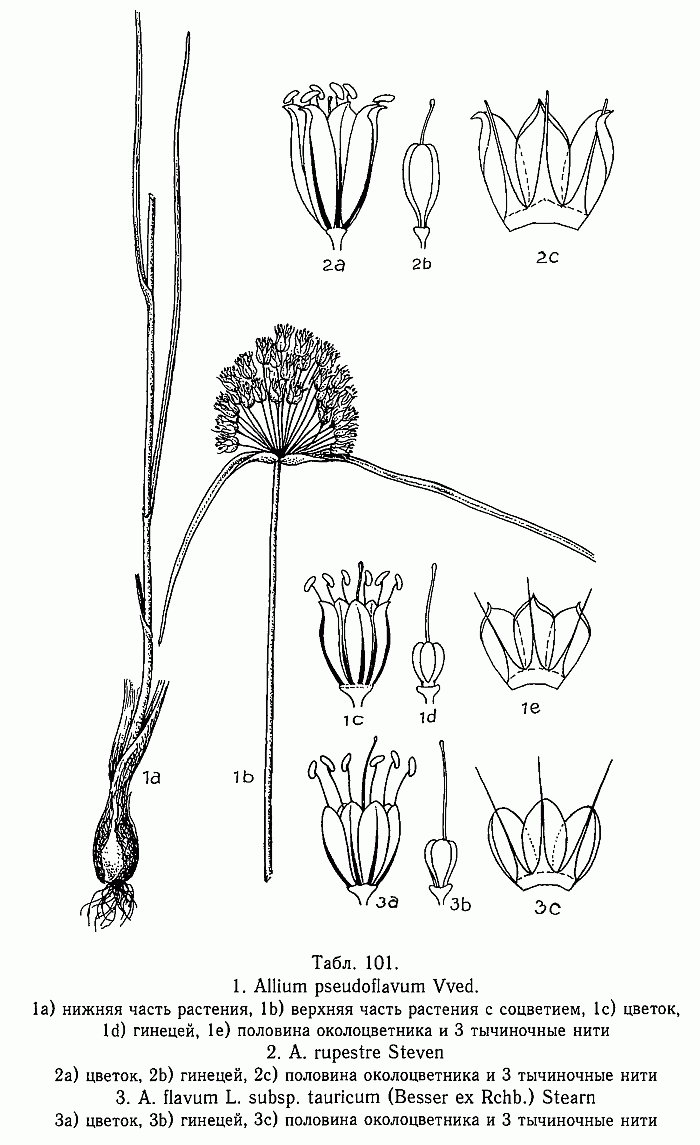 Так тычинки и так желтые, а про нити не сказано.Что касается Allium pseudoflavum, то доверять можно лишь первоописанию Введенского, повторенному им же во Флоре СССР, и затем Флоре Армении, которая утверждает, что распространение Allium pseudoflavum сильно преувеличено последующими авторами, исказившими авторскую трактовку вида, и ограничено лишь небольшой частью Армении и Турецкой Армении. По крайней мере тычинки у него должны быть только жёлтыми. |