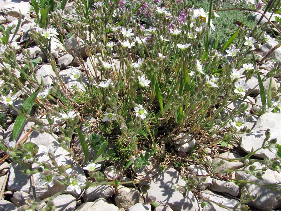 У меня выходит Minuartia hirsuta - у M. taurica лепестки вдвое превышают чашелистники, а у M. adenotricha чашелистники всего с одной жилкой и гораздо более узкие.