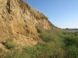Обвально-осыпной песчано-глинистый берег. Подножие обрыва зарастает, в основном, Atriplex. 19.08.2013. [summer]