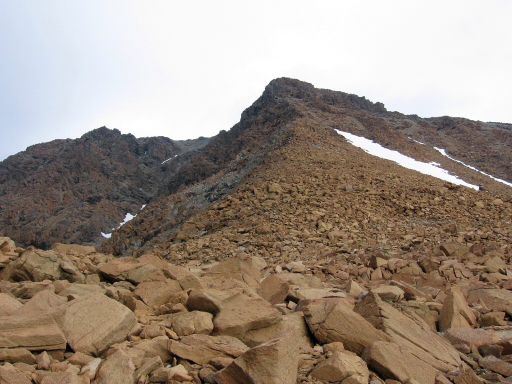 Глыбовые осыпи на седловине Западно-Пайерского перевала (1000 м). Слева — Европа, справа — Азия, прямо — г. Пайер (1499 м). Июль 2007 г. [summer]