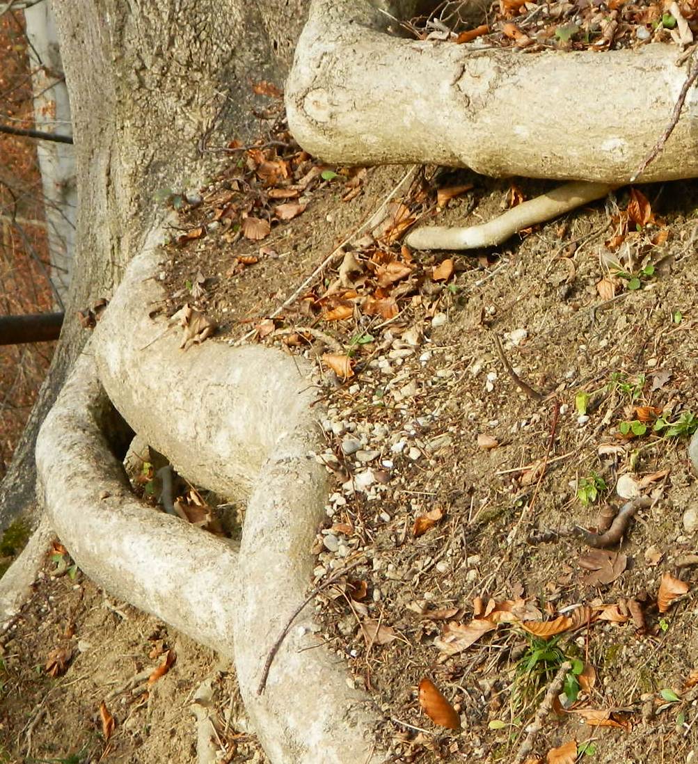 Обнажившаяся корневая система бука (Fagus sylvatica?). [winter]