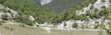 Луг под ставком и окрестные горы. На среднем плане — лиственный лес (Quercus, Carpinus orientalis, Cotinus coggygria, Padellus mahaleb, Fagus, Corylus), на заднем плане — хвойный лес (Pinus). [summer]