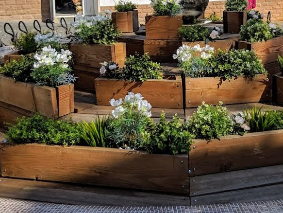 Городская клумба с искусственными цветами. 29.09.2019. [late summer — early autumn]
