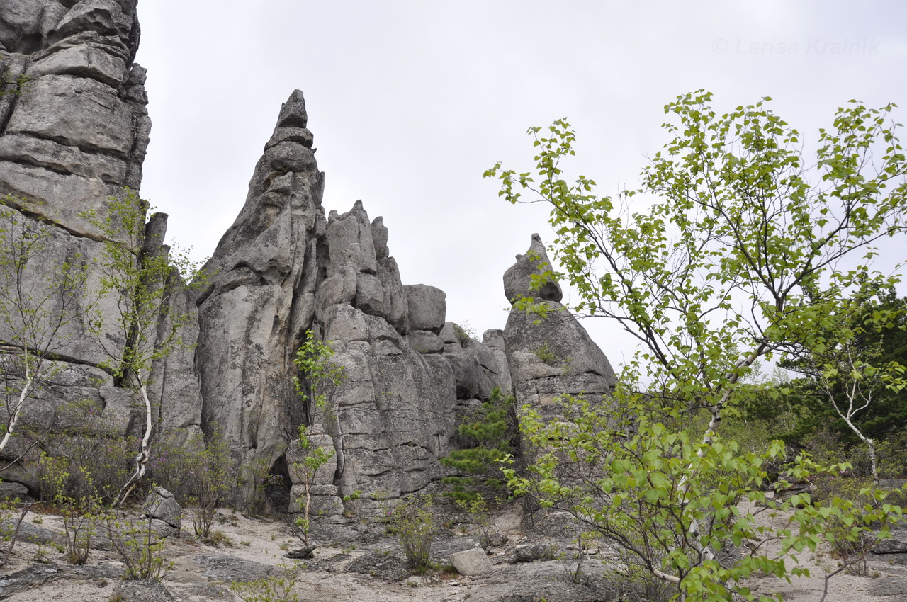 Скопление скальных останцов. Распускается Betula lanata, практически отцвел Rhododendron mucronulatum. 17.05.2020. [spring]