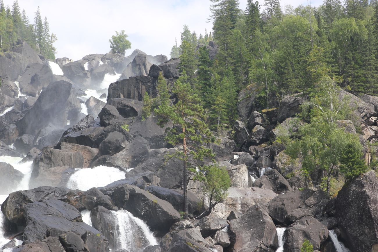 Вид на левый берег водопада Учар. Здесь на глыбах растут сосны и берёзы. 7 августа 2020 г. [summer]