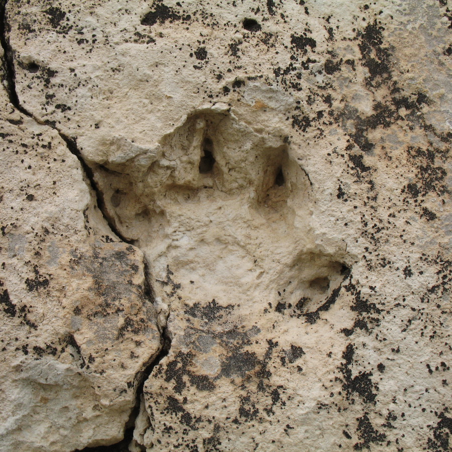 Перевёрнутый скальный блок в провале Жигалган с окаменевшими следами различных видов животных гиппарионовой фауны. 13 мая 2024 г. [late spring — early summer]