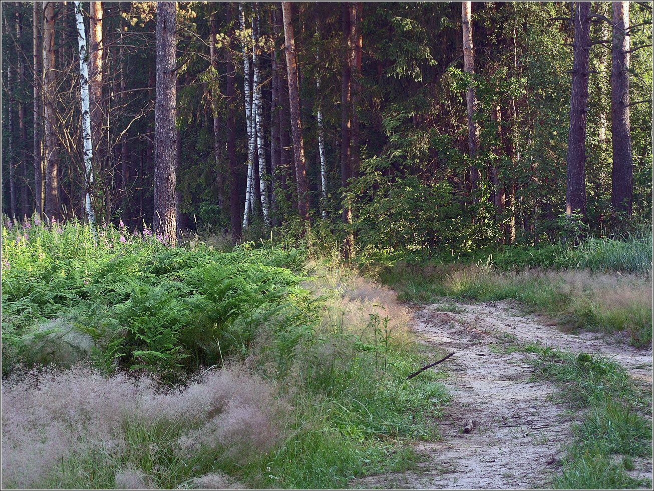 Грунтовая дорога, ведущая в смешанный лес. 11.07.2004. [summer]