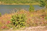 Луговое сообщество на берегу озера. На переднем плане, плодоносит Cirsium kamtschaticum повсеместно краснеет Chamaenerion angustifolium. 03.09.2025. [autumn]