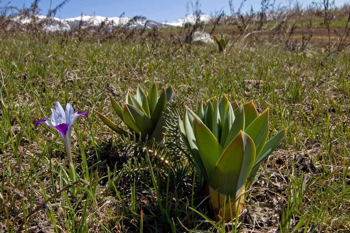 Растительное сообщество, включающее цветущий Iridodictyum kolpakowskianum, Eremurus и Pseudosedum. Начало мая 2015 г. [spring]